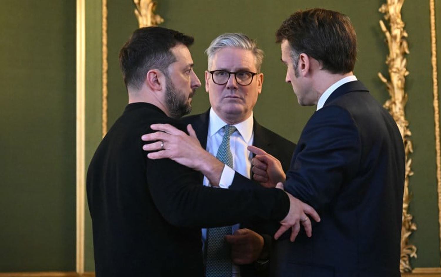 لە چەپەوە، ڤۆلۆدیمیر زیلینسکی، سەرۆکی ئۆکراینا، کیەر ستامەر، سەرۆکوەزیرانی بەریتانیا و ئیمانوێل ماکرۆن، سەرۆکی فەرەنسا. وێنە: GETTY