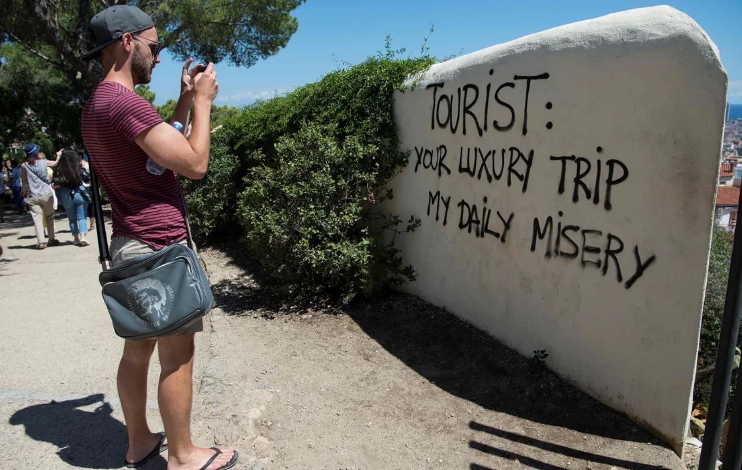 وێڕای بەرزبوونەوەی رێژەی هەڵاوسان و گرانی، ئیسپانیا بەرەو ئەوە دەڕوات ژمارەی پێوانەیی گەشتیاران تۆماربکات، بەڵام تاوەکو دێت خەڵکێکی زیاتری وڵاتەکە لە گەشتیاران بێزاردەبن. هاووڵاتییانی ئەو وڵاتە لە دەربڕینی دژایەتیی بۆ گەشتیاران، داهێنانیان کردووە. بە رەنگ و شێوازی جۆراوجۆر لەسەر دیوارەکان نووسیویانە "گەشتیاران بڕۆنەوە."