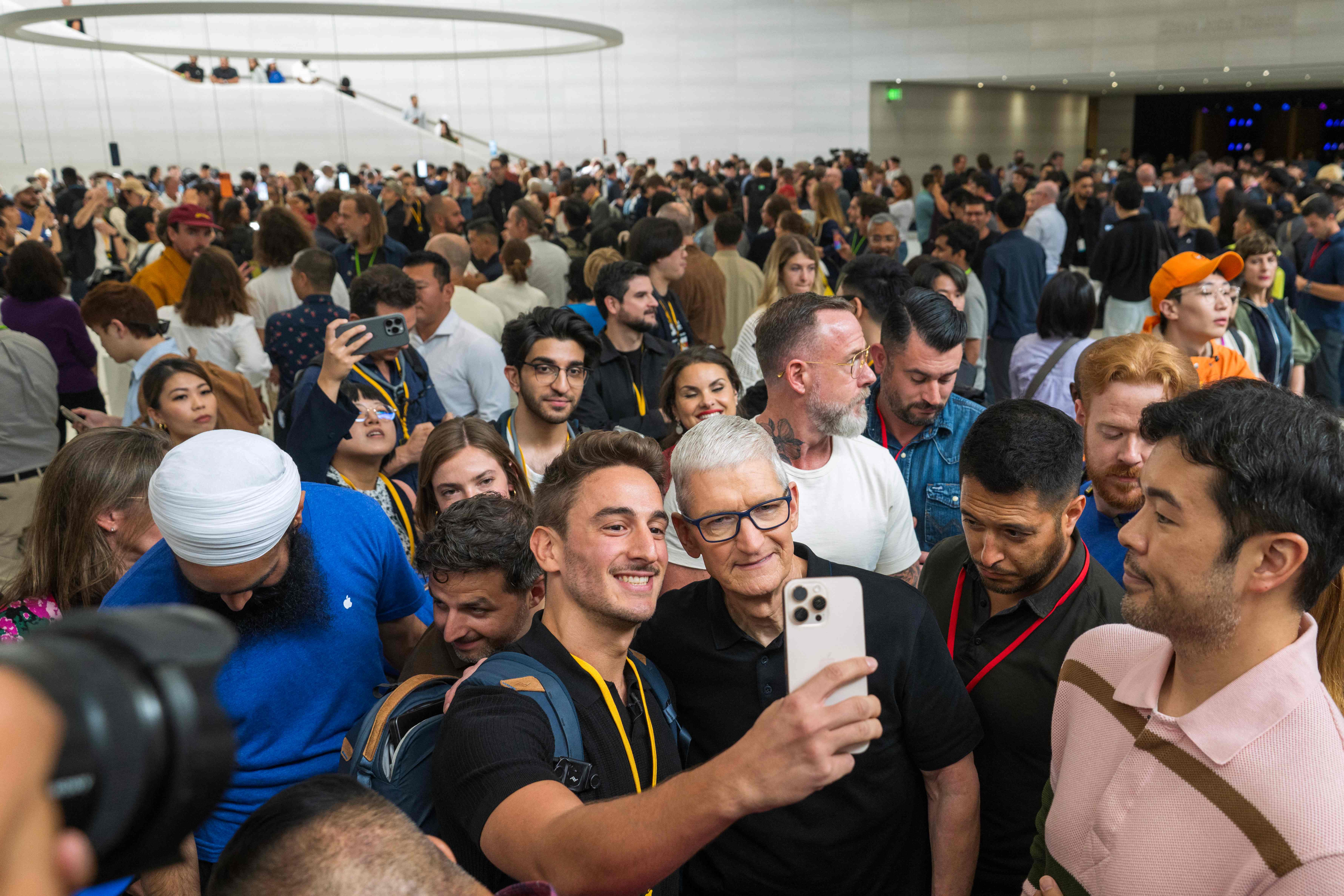 تیم کوک، بەڕێوەبەری جێبەجێکاری ئەپڵ بە روویەکی خۆشەوە هاتە سەر ستەیج و سەرەتا باسی لە گەشەسەندنی خێرای تەکنەلۆژیا و رۆڵی ئەپڵ لە پێشەنگایەتیکردنی ئەم بوارەدا کرد.