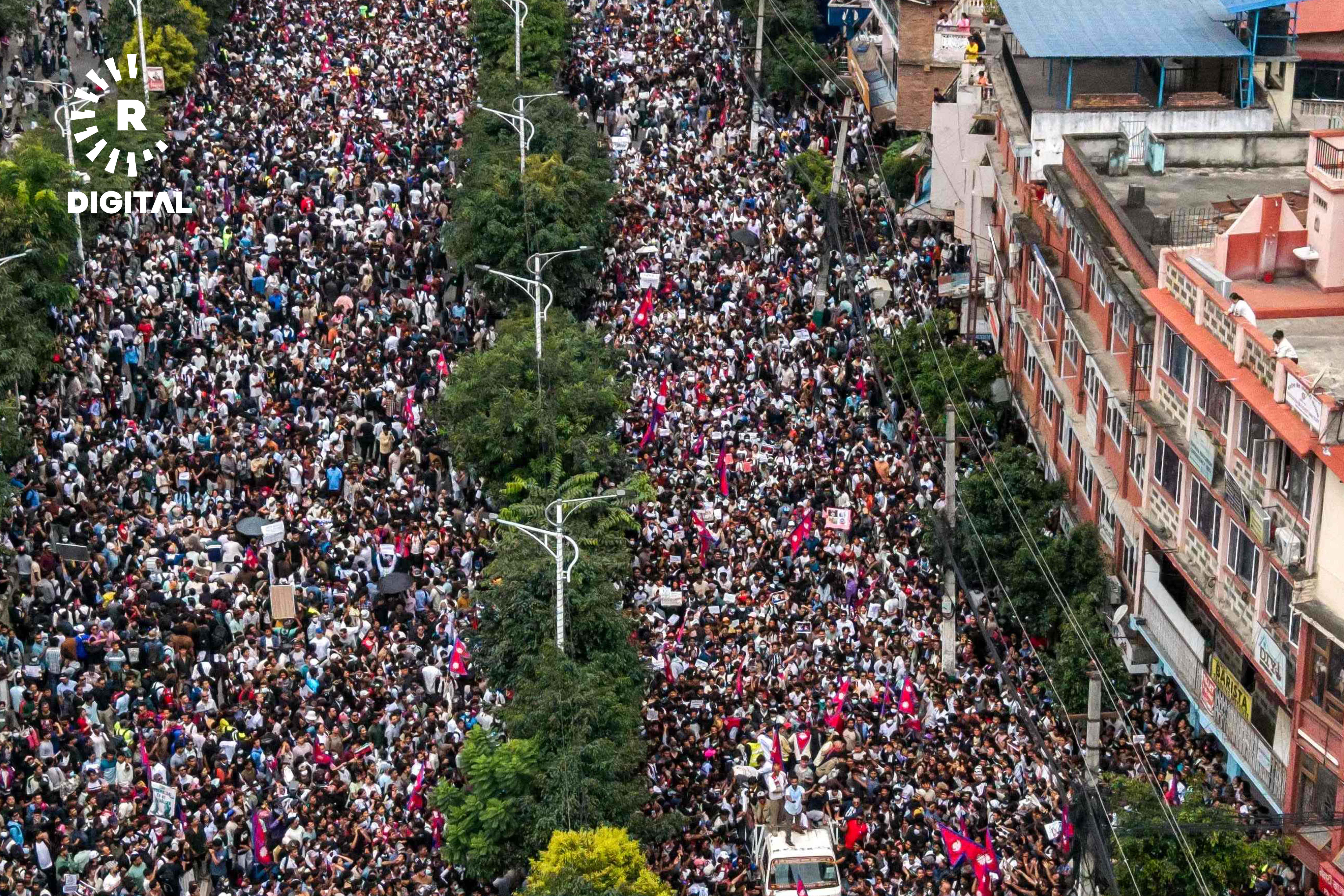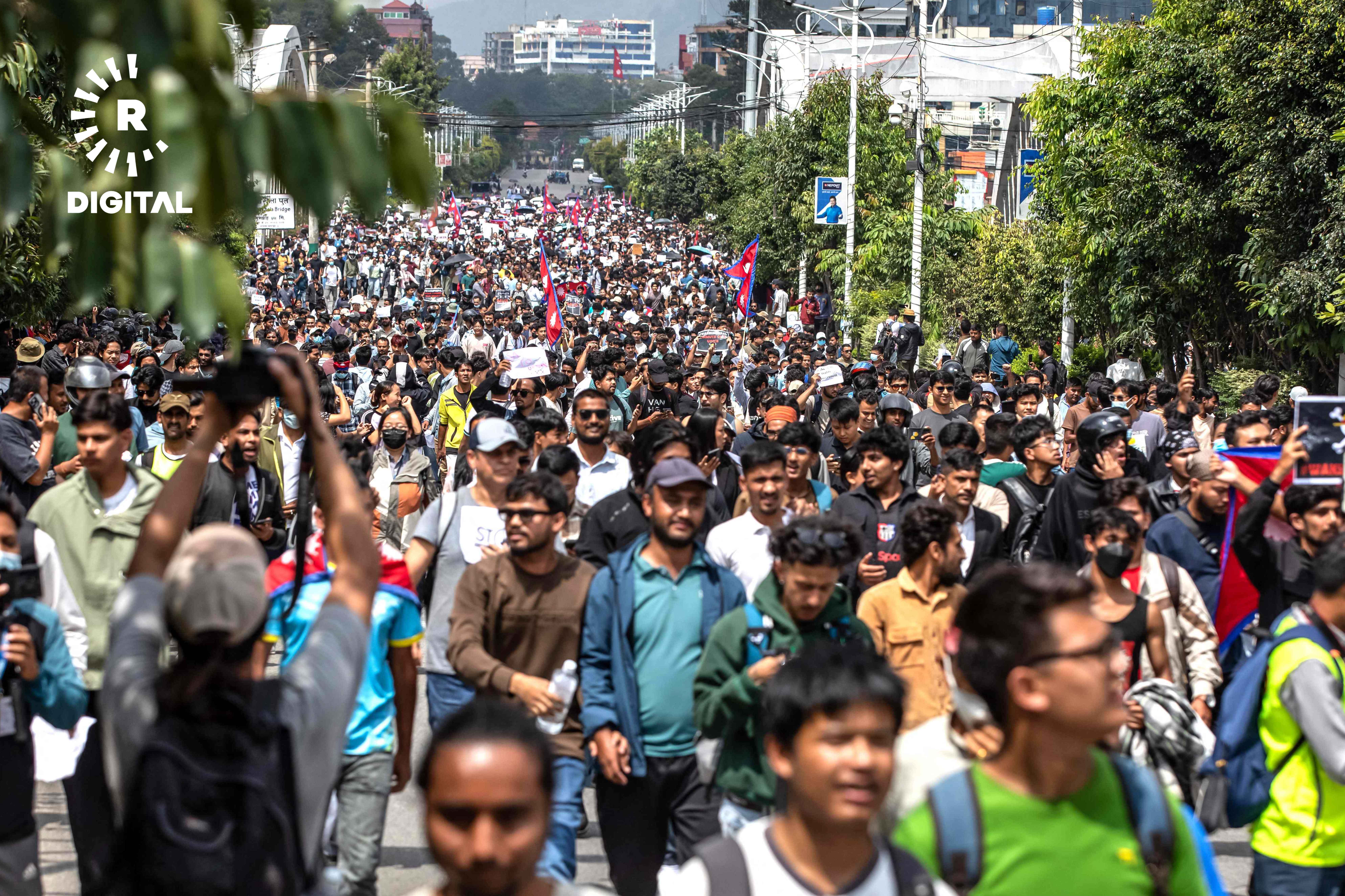 بەیانیی دووشەممە، هەزاران گەنج لە شەقامەکانی کاتماندوی پایتەخت و شارەکانی دیکە کۆبوونەوە بۆ داواکردنی چالاککردنەوەی تۆڕە کۆمەڵایەتییەکان.