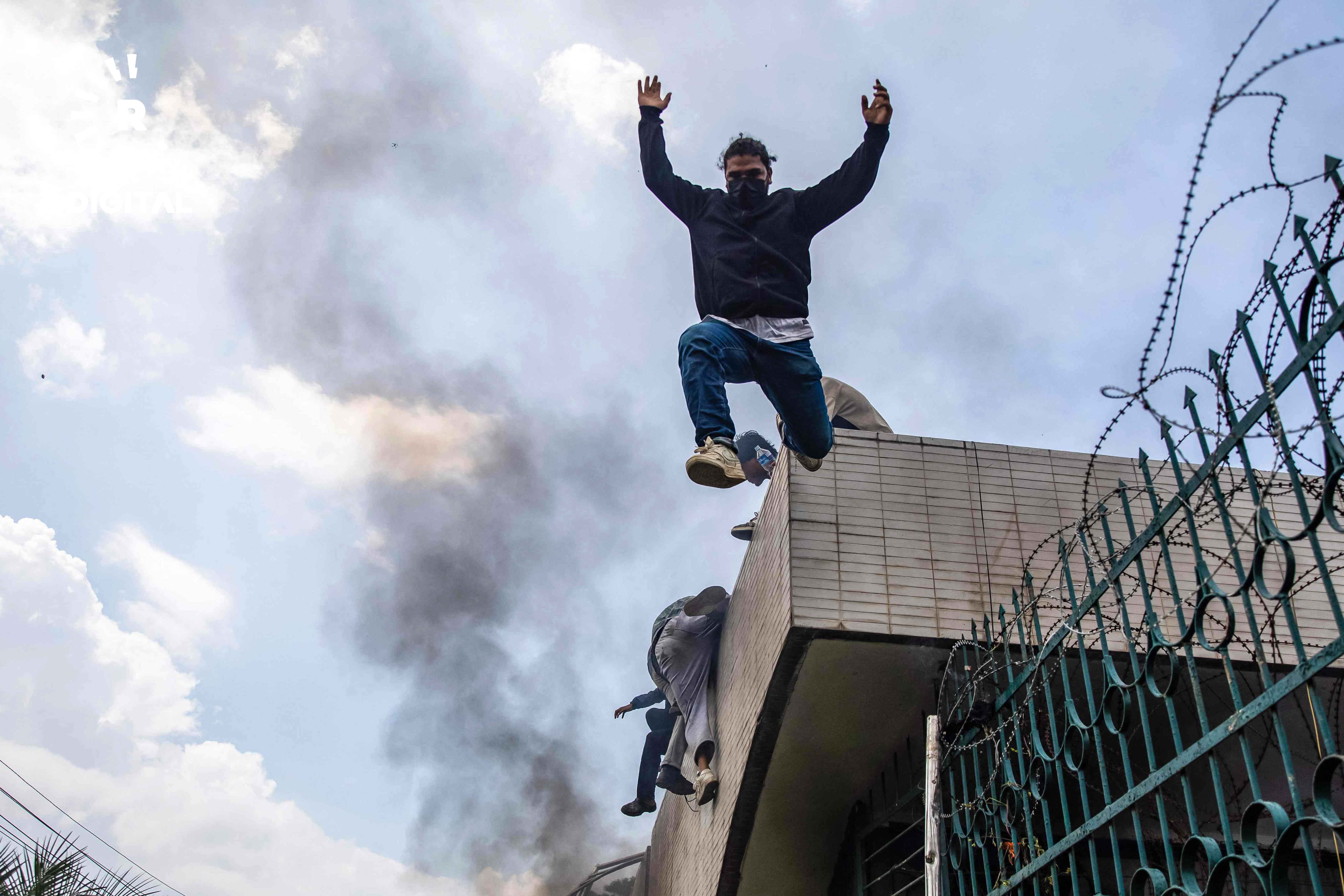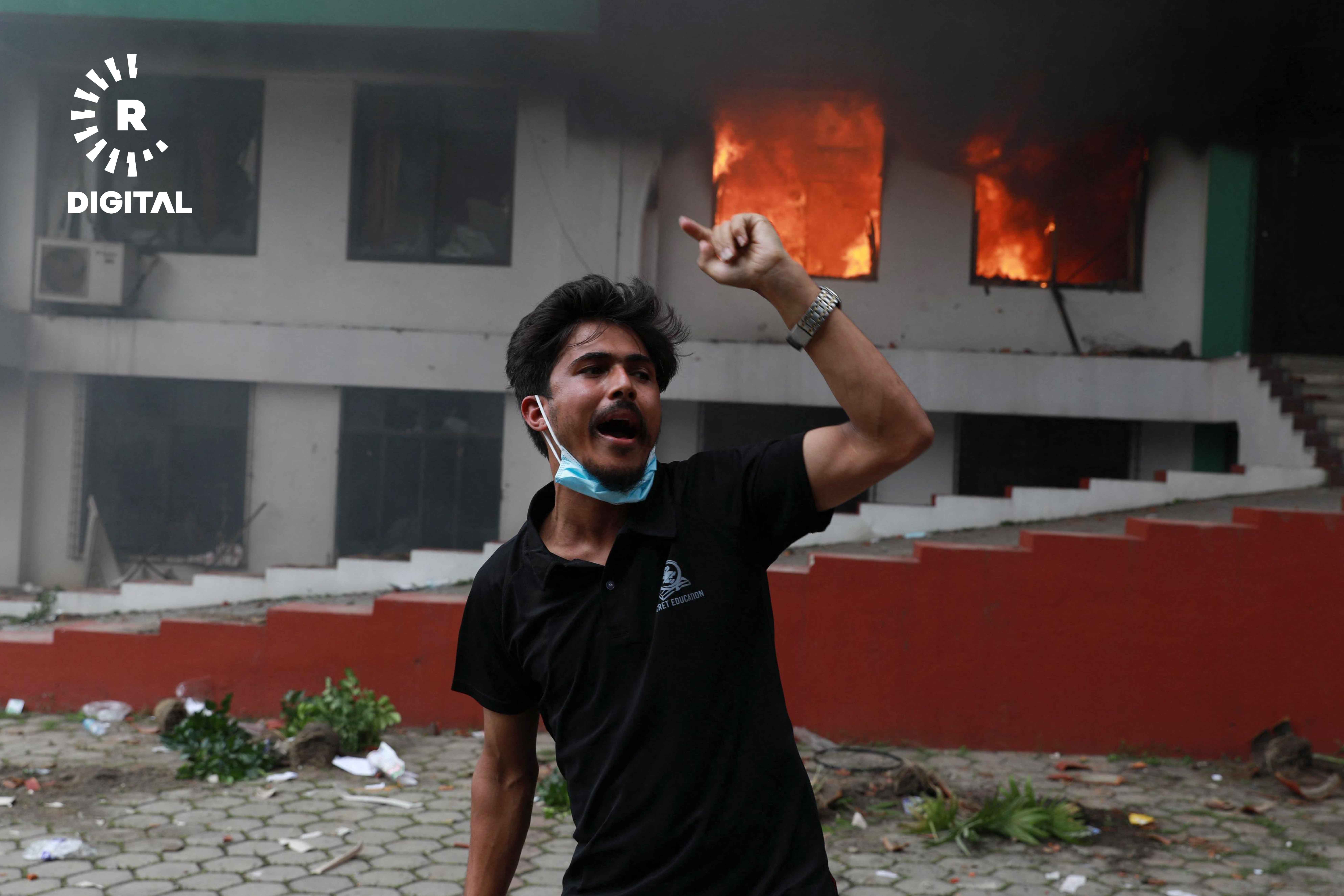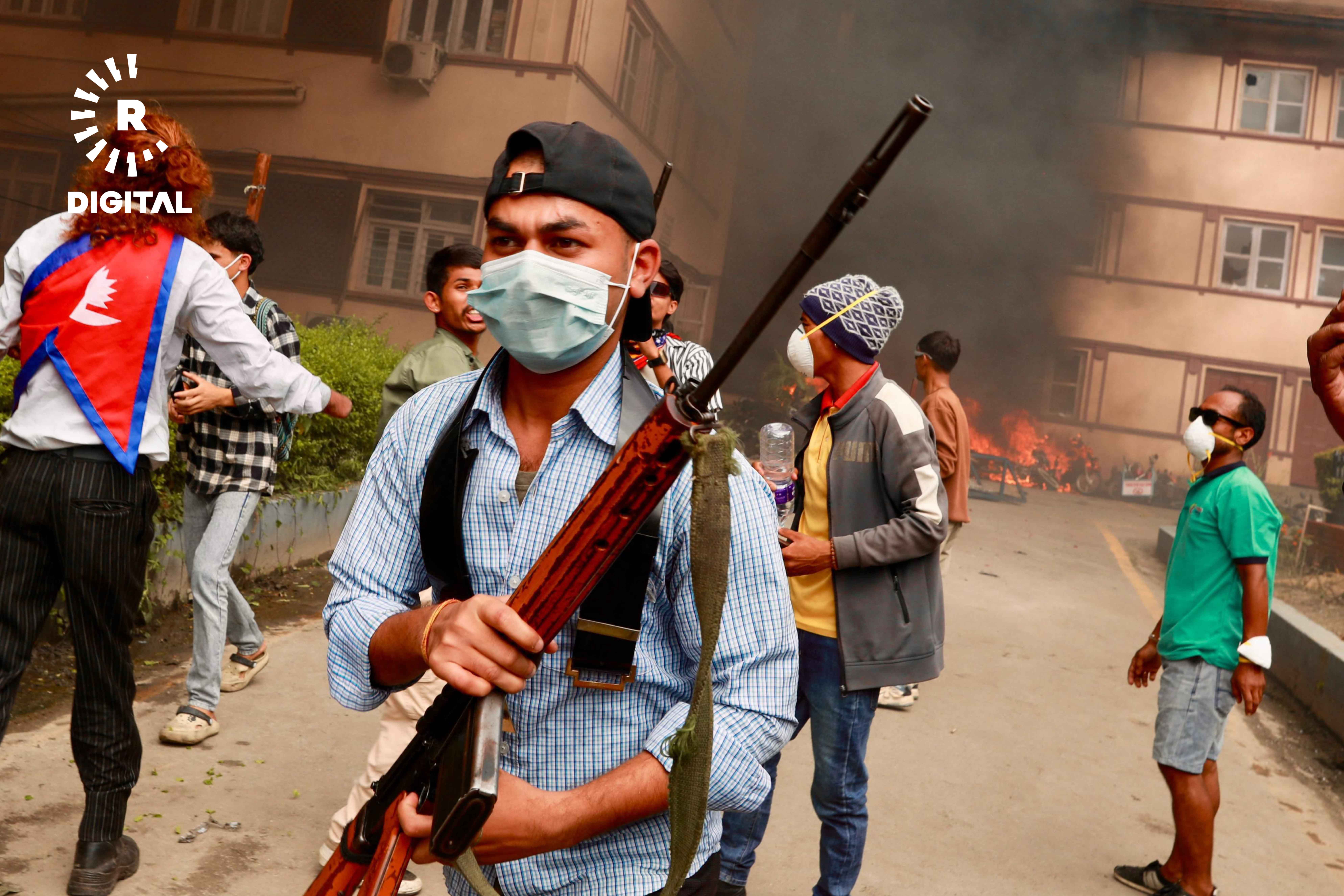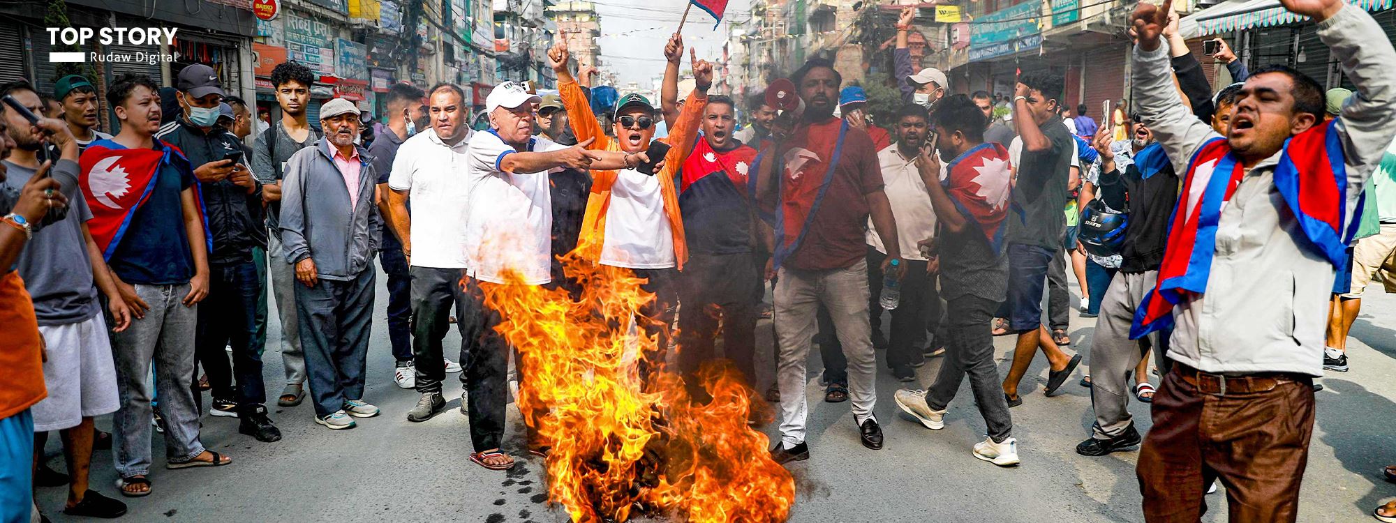 دواتر خۆپێشاندەران ئاگریان لە باڵەخانەی پەرلەمان بەردا. ئیکرام گیری، گوتەبێژێکی حکومەتی نیپاڵ بە ئاژانسی فرانس پرێسی راگەیاند، "سەدان کەس هەڵیانکوتایە سەر پەرلەمان و ئاگریان لە باڵەخانە سەرەکییەکە بەردا."