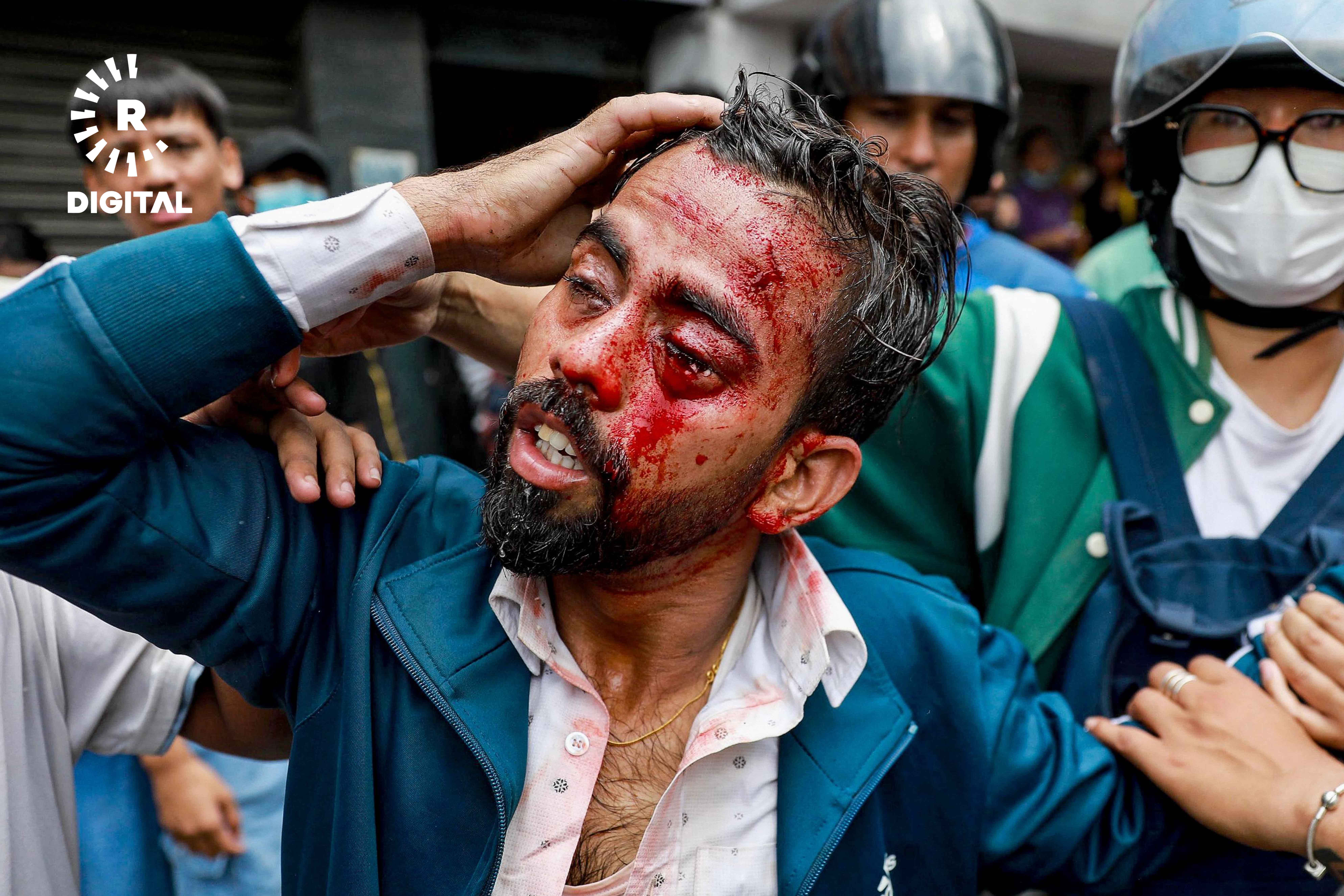 لە چەند گرتەیەکی ڤیدیۆییدا دەردەکەوێت کە خۆپێشاندەرانی نیپاڵ لە وەزیری دارایی وڵاتەکەیان دەدەن.