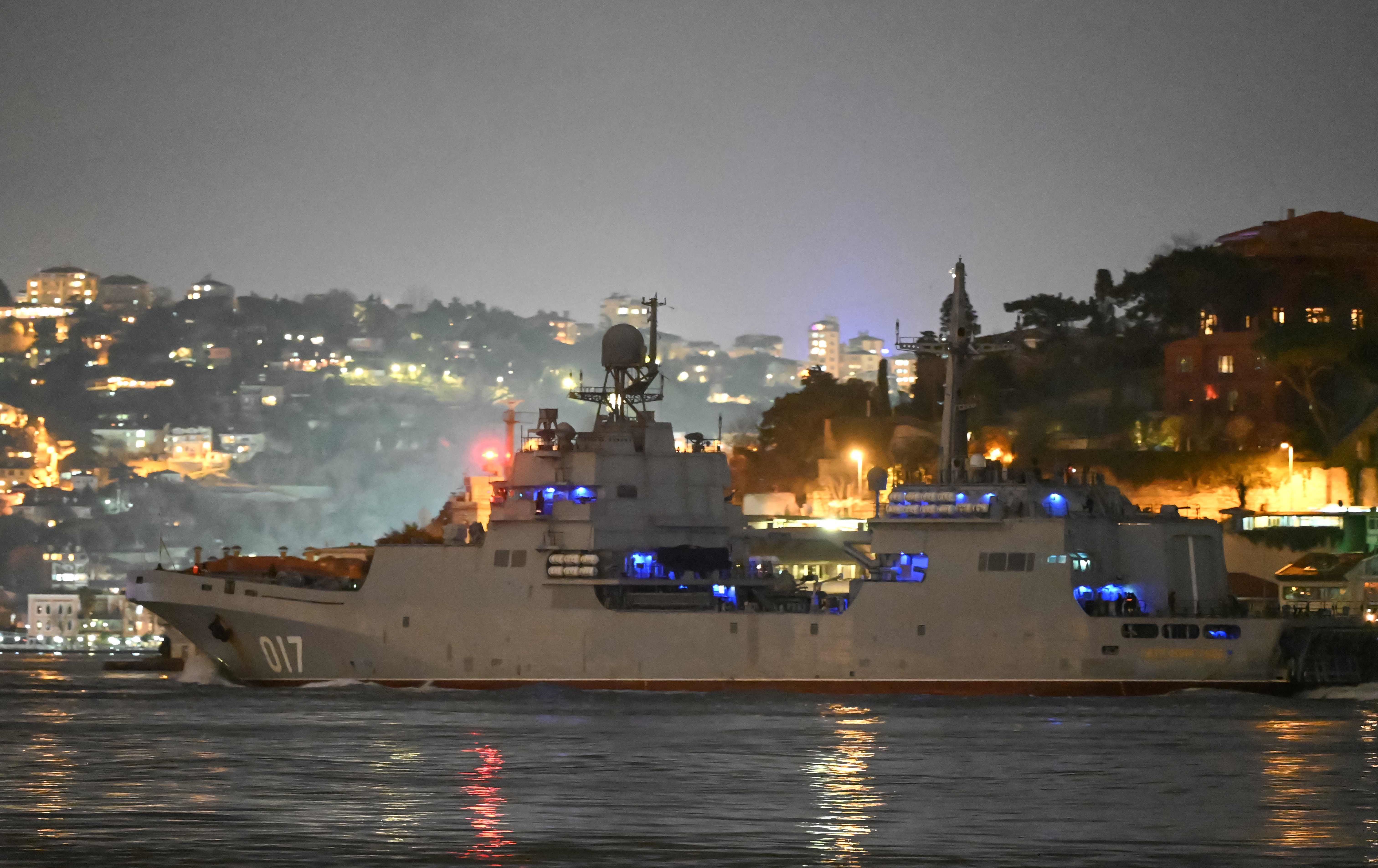 یەکێک لەو کەشتییە جەنگیانەی لە رووسیا لە رێگەی تورکیاوە رەوانەی دەریای رەش کراوە. وێنە: Ozan KOSE / AFP