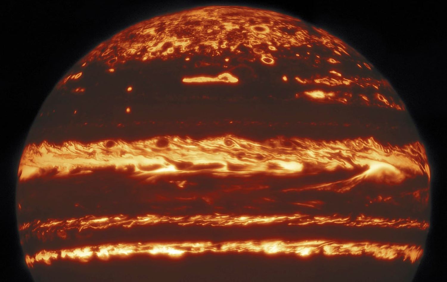 دوای چەندین ساڵ لە لێکۆڵینەوە و وردبوونەوە، کەشتیوانانی ئاسمانی وێنەی هەسارەی موشتەرییان لە گۆشەیەکی جیاوازەوە دەستکەوتووە، ناویان ناوە "وێنەی خۆشبەختانە" و بۆ یەکەمجار چەندین چاڵی رەش لەنێو تیشکە ئاگرینەکانی هەسارەکەدا دەردەکەون.