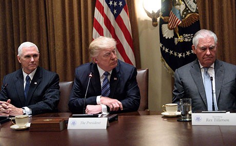 لە سەرەتای دەستبەكاربوونیدا، هیوایەكی زۆر هەبوو رێكس تیلەرسن، وەزیری دەرەوەی ئەمریكا، بتوانێت لە روئیای ترەمپدا شوێنێكی بەرز بۆ وەزارەتی دەرەوە بكاتەوە، بە تایبەتیش لەبەر ئەوەی پێشتر بەڕێوەبەری جێبەجێكاری ئیكسۆن مۆبیل بووە و ئەزموونێكی باشی دانوستاندنی هەیە. بەڵام بە گوتەی بەرپرسانی ئێستا و پێشووی وەزارەتەكە، ئیدارەی ترەمپ "وەزارەتی دەرەوەی پوكاندووەتەوە، كۆشكی سپی و وەزارەتی بەرگری رۆڵی وەزارەتی دەرەوەیان لە هەوڵە دیپلۆماسییەكاندا سفر كردووە".