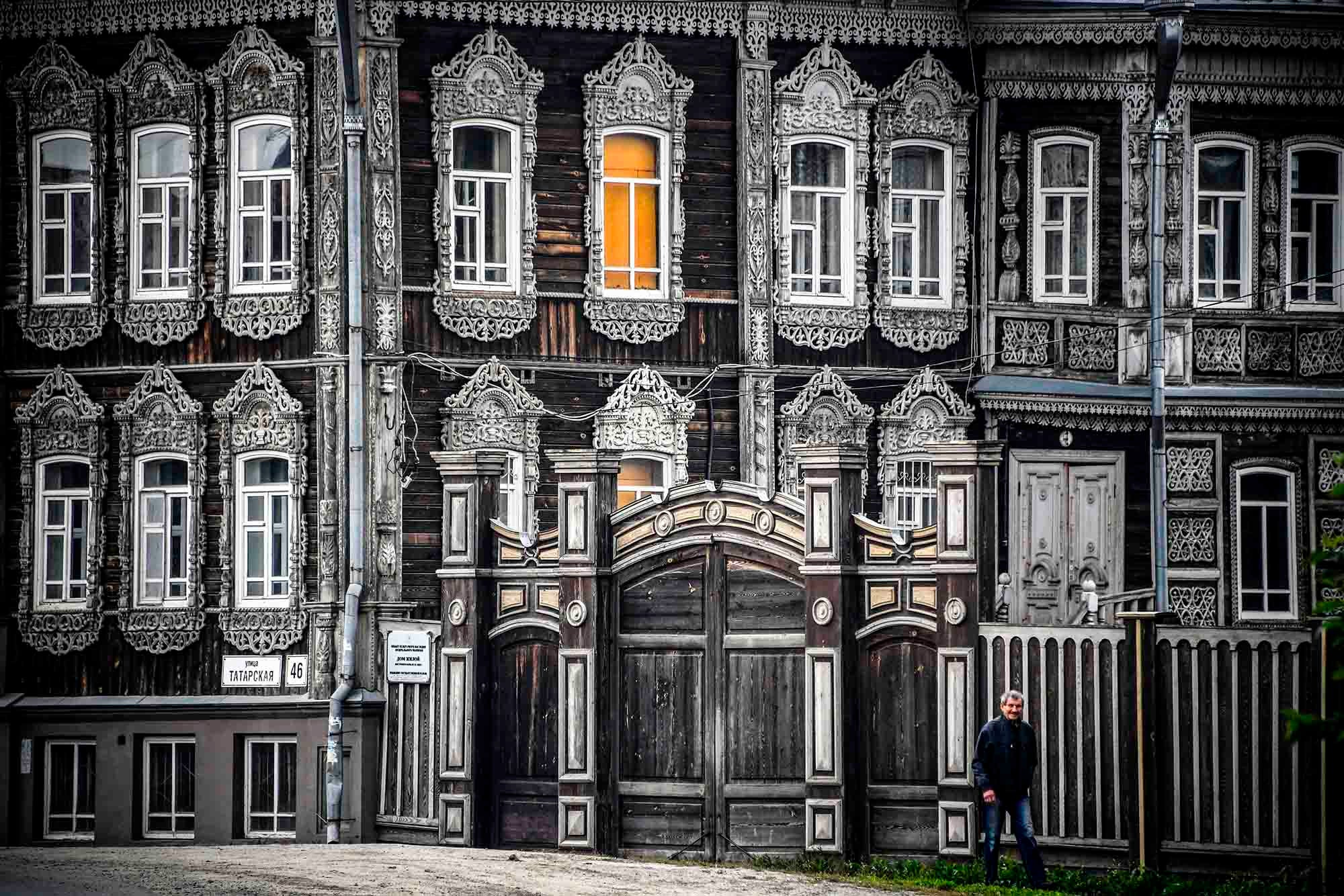 ماڵێکیی کەلەپووری لە شاری تۆمسکی رووسیا کە لە تەختە دروست کراوە کە یەکێکە لە بەناوبانگترین خانووە تەختەییەکانی ناوچەکانی تەتەر./AFP