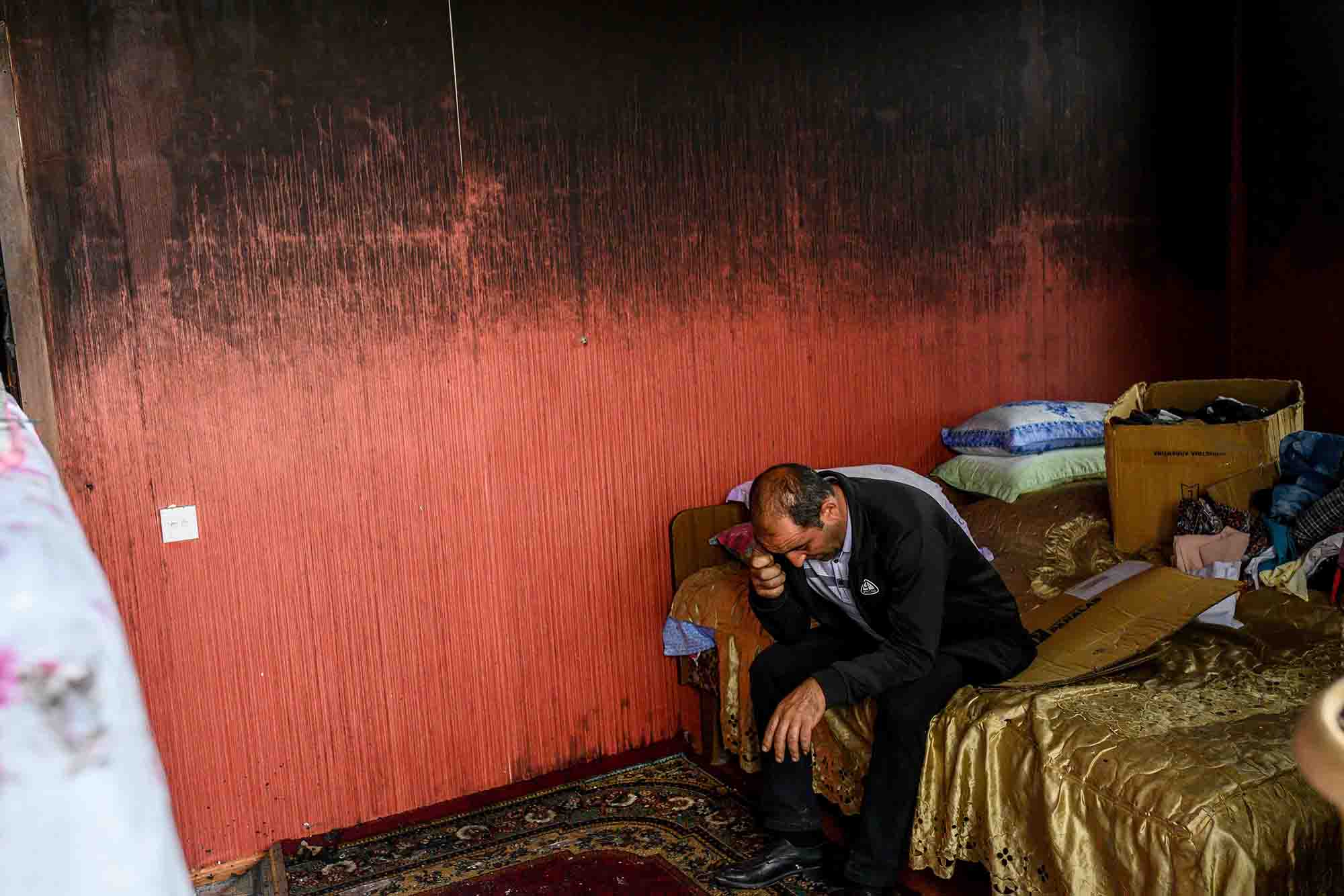 رەزیم محەمەدۆڤی تەمەن 40 ساڵ لەسەر جێگەی ماڵەکەیەتی کە بەهۆی بۆردوومانەوە زیانی بەرکەوتووە. شاری تەرتەر، ئازەربایجان./AFP