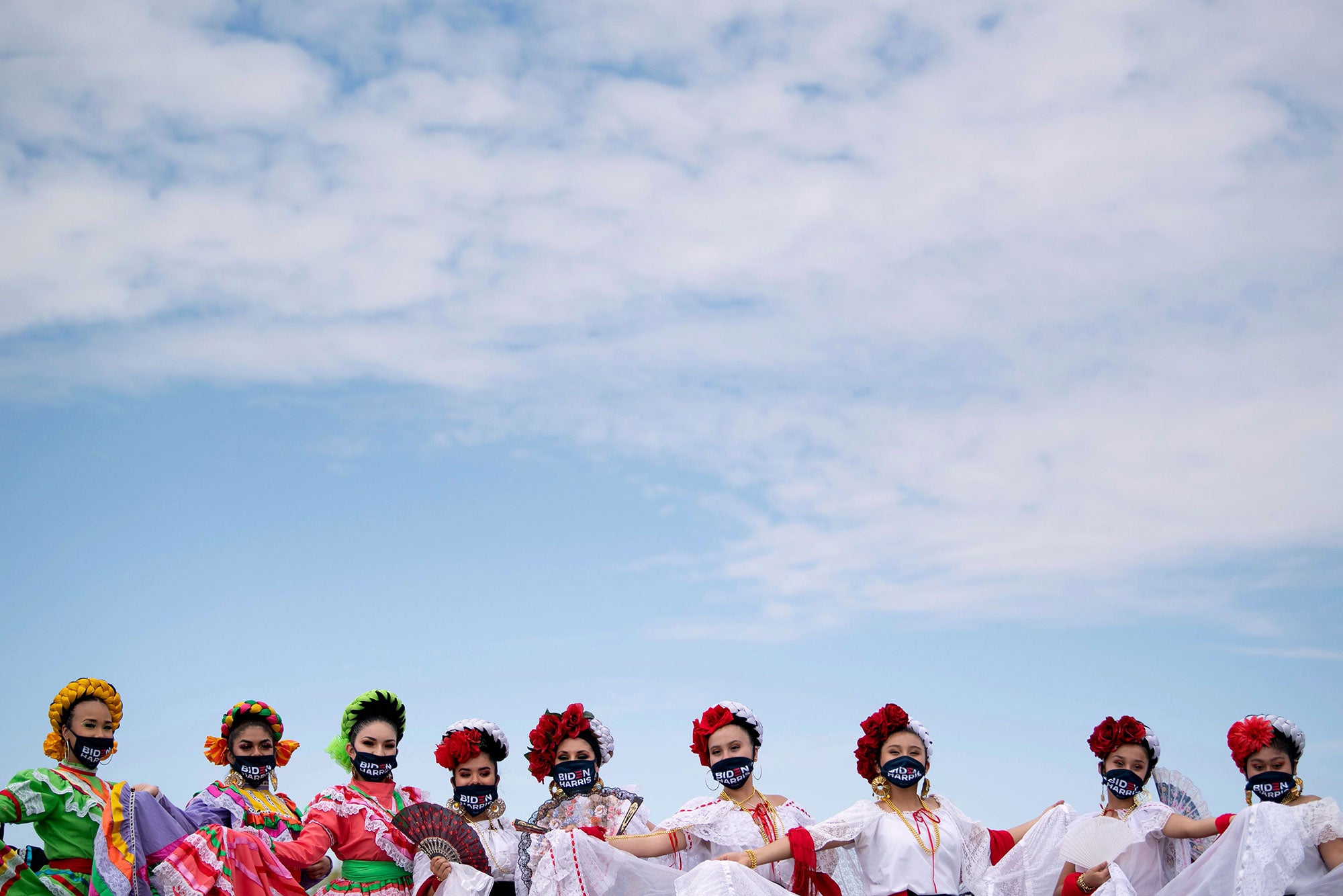 لە لاس ڤێگاس چەند ئافرەتێک پشتیوانی لە جۆ بایدن، بەربژێری پۆستی سەرۆکایەتیی ئەمریکا، دەکەن و چاوەڕوانی گەیشتنی کاروانی ئۆتۆمبێلەکانی دەکەن/AFP