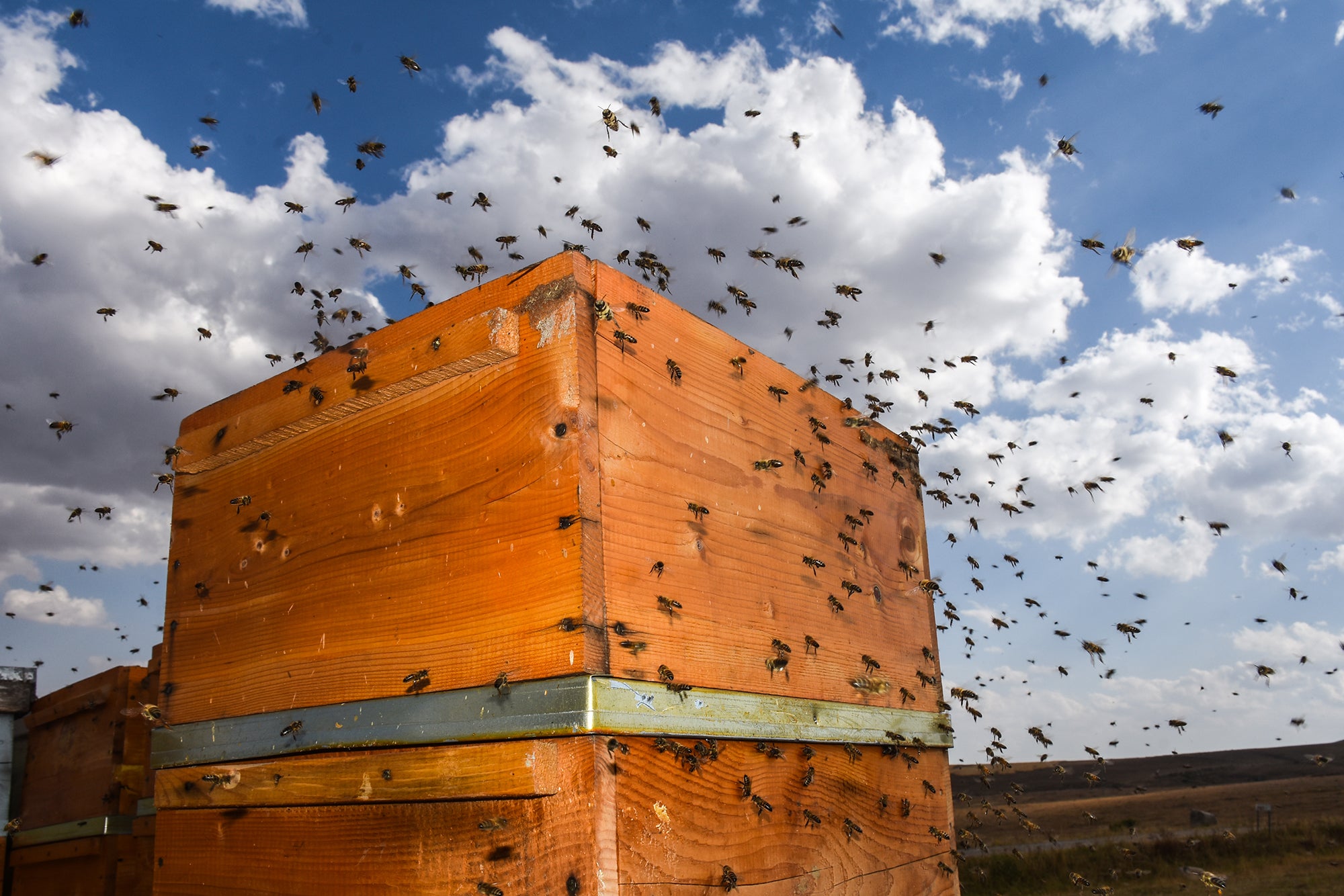 لە پارێزگای قەرسی باکووری کوردستان وەرزی هەنگبڕین دەستیپێکردووە و، لە کاتی کۆکردنەوەی بەرهەمدا هەنگەکان دەچنە نێو شانەکان./ AA