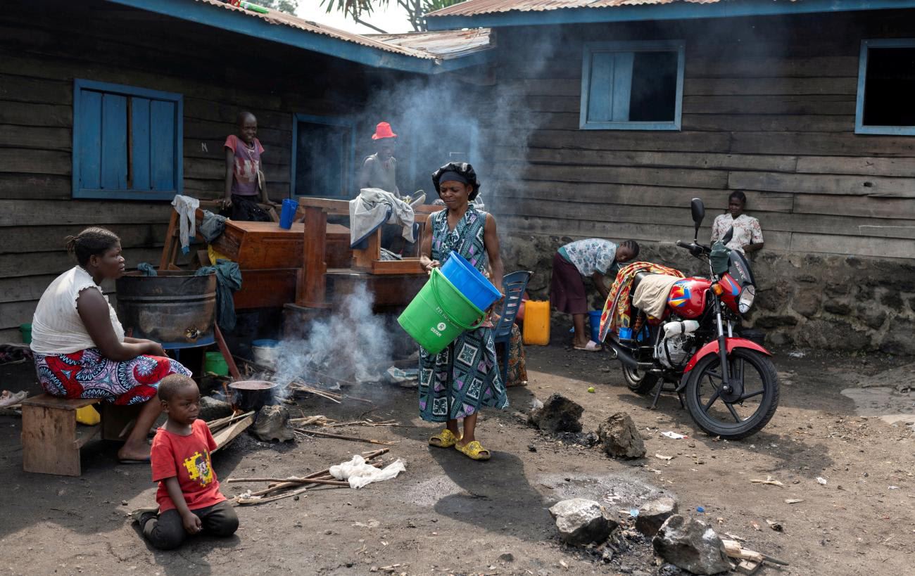 ژنێک خواردن بۆ منداڵەکانی ئامادە دەکات لە کاتێکدا ئاوارە بوون، بەهۆی بەردەوامبوونی توندوتیژی لەنێوان یاخیبووانی M23 و سوپای کۆماری دیموکراتی کۆنگۆ (FARDC)، لە شاری گۆمای کۆماری دیموکراتی کۆنگۆ، لە 2ی شوباتی 2025. وێنە: Reuters