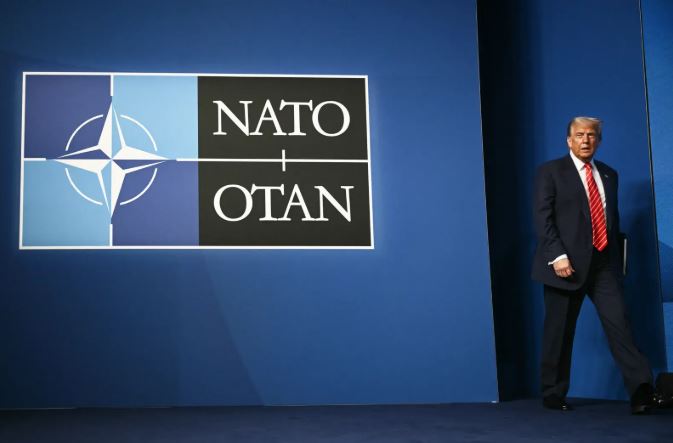 دۆناڵد ترەمپ، سەرۆکی ئەمریکا، دەگاتە کۆنفرانسێکی رۆژنامەوانی لە کاتی لووتکەی سەرۆک و حکومەتەکانی رێکخراوی پەیمانی باکووری ئەتڵەسی (ناتۆ) لە لاهای، لە 25ی حوزەیرانی 2025. وێنە: Getty Images