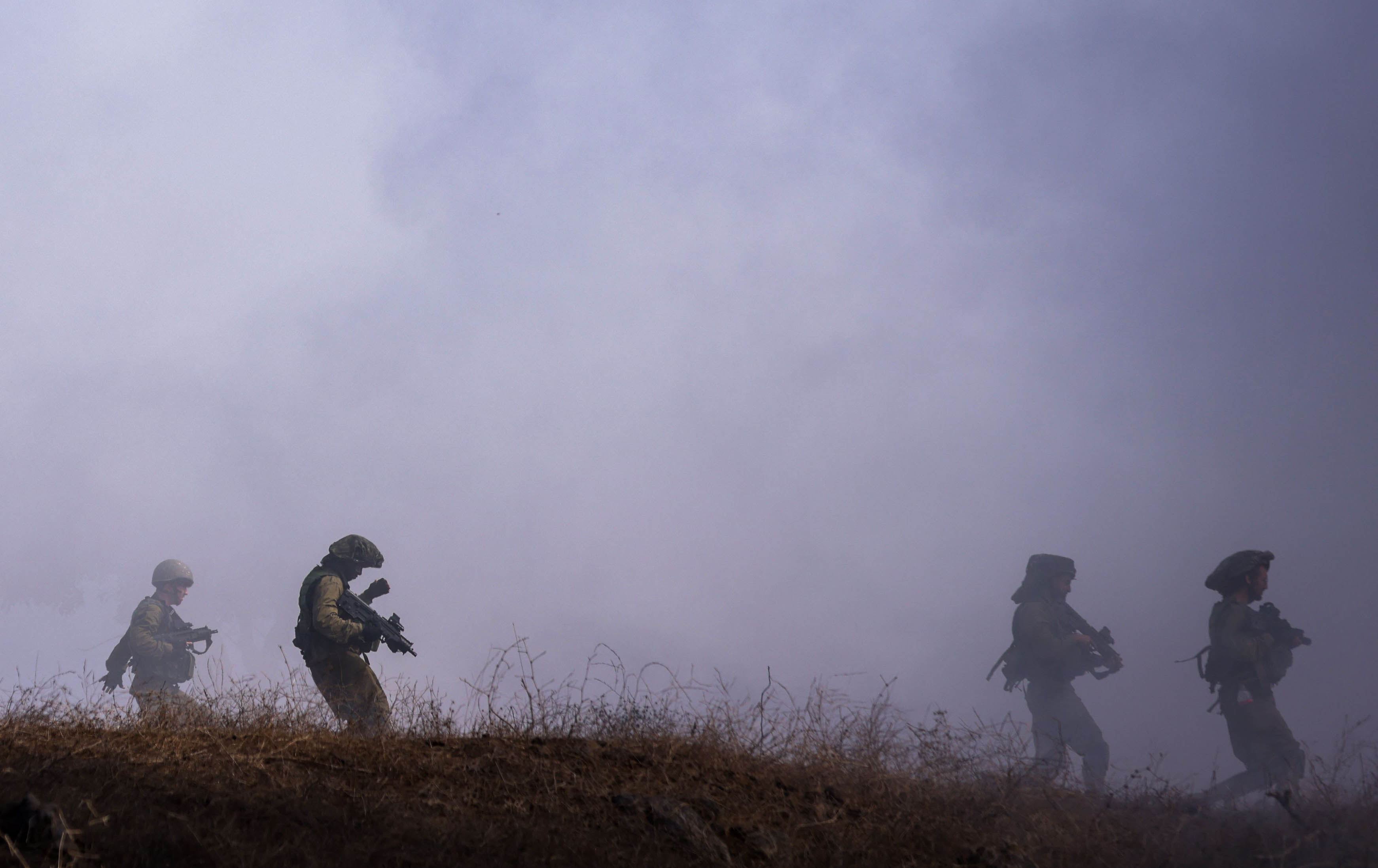 ژمارەیەک سەربازی ئیسرائیلی لە بەرزاییەکانی جۆلان مەشق و راهێنان دەکەن. وێنە: Jalaa MAREY / AFP