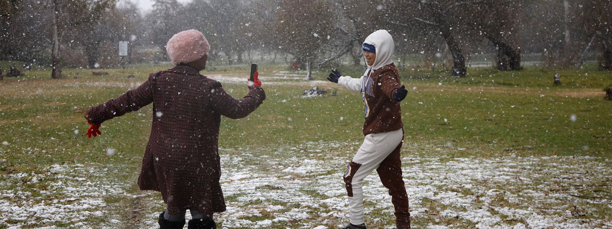 لە گەورەترین شاری ئەفریقای باشوور، گەنج و پیر دڵخۆشن کاتێک بۆ یەکەم جار لە دوای 11 ساڵ بەفربارین دەبینن؛ بەشێک لە منداڵانیش بۆ یەکەمجاریانە بەفر لە وڵاتەکەی خۆیاندا دەبینن.