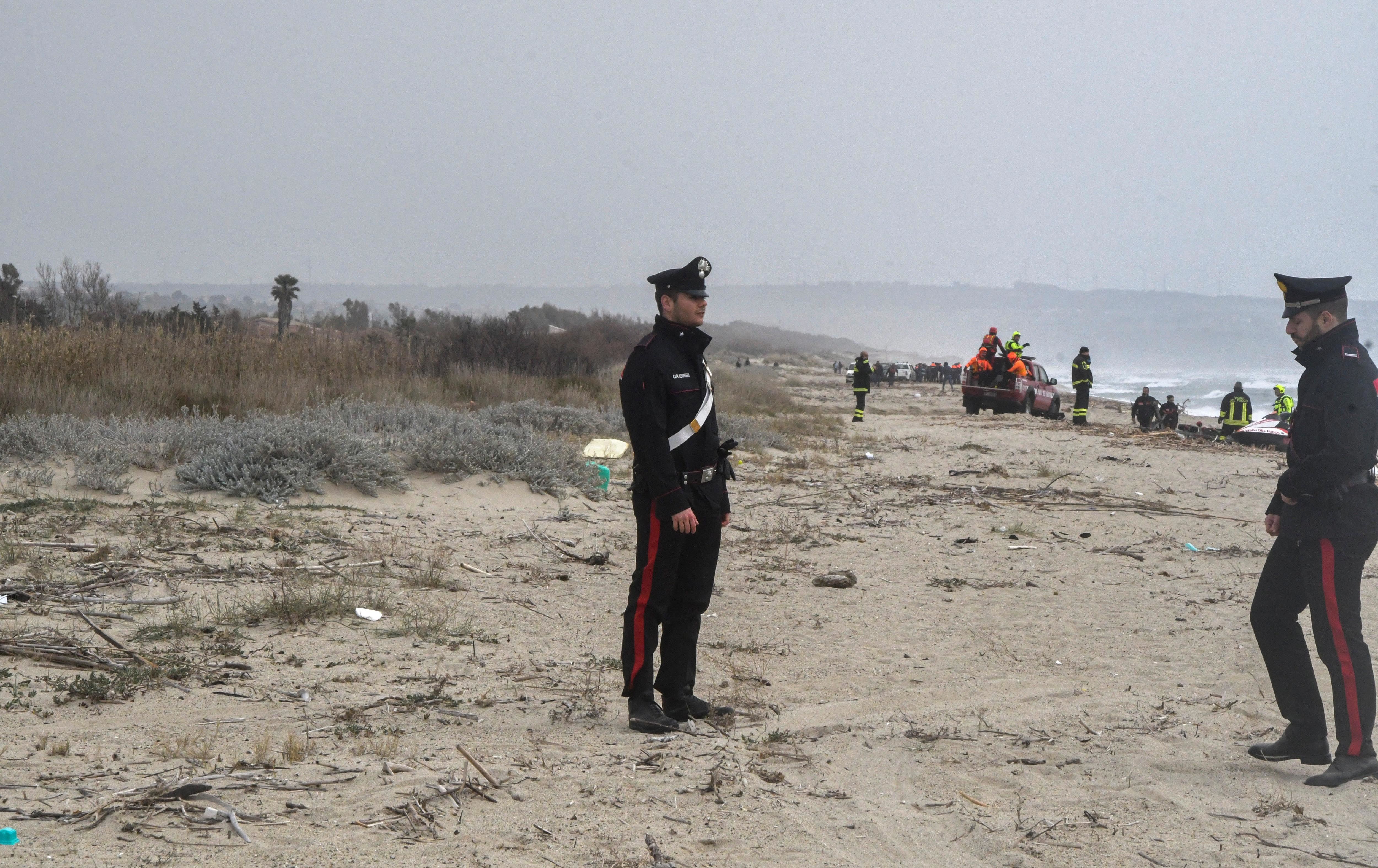 ئەفسەرانی پۆلیسی ئیتاڵیا لە کەناراوی کارابینێری وڵاتەکەیان کاتێک بەشوێن تەرم و پاشماوەی بەلەمێکی نقومبووی کۆچبەران دەگەڕێن لە 26-2-2023. وێنە: Reuters