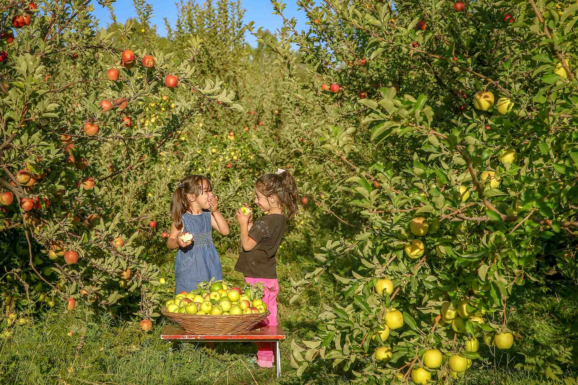 دوو منداڵ لەناو باخێکی سێودا لە ناوچەی ئیدرمیت لە وان خەریکی سێو خواردنن. / AA 1