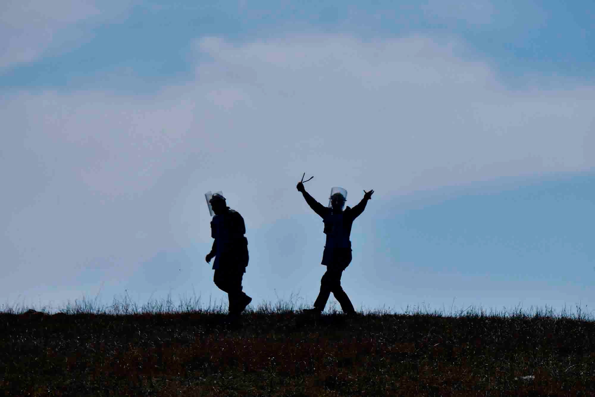 لە سەروبەندی شەڕ و ئاڵۆزییەکانی نێوان ئەرمینیا و ئازەربایجان، دوو ئەندامی دەستەیەکی سەر بە وەزارەتی دۆخە لەناکاوەکانی قەرەباخ خۆیان ئامادە دەکەن بۆ پووچەڵکردنەوەی بۆمبەکانی دەوروبەری شاری ستیپاناکیرت./ AFP