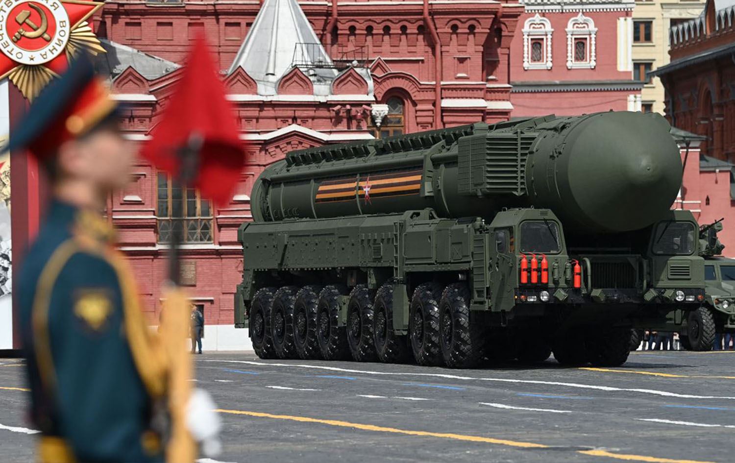 مووشەکێکی بالیستیی رووسی کە دوای دەستپێکردنی جەنگی ئۆکراینا ئەو وڵاتە نمایشی کرد. وێنە: Kirill Kudryavtsev/AFP/Getty Images