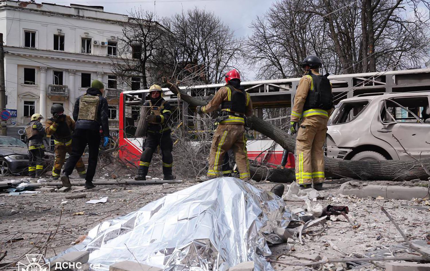 تیمە فریاگوزارییەکان دەڵێن، رووسیا ناوەندی شارەکە، ئەو شوێنەی زۆرترین خەڵک لێی کۆدەبنەوە، بۆردوومان کردووە.