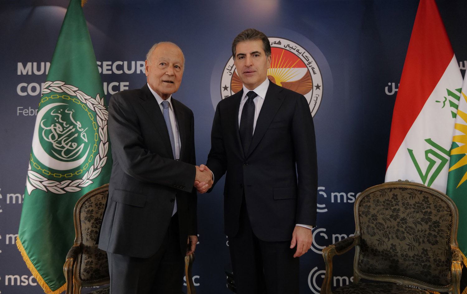 پاشنیوەڕۆی ئەمڕۆ شەممە 14-02-2026 لە کۆنفرانسی ئاسایشی میونشن، نێچیرڤان بارزانی، سەرۆکی هەرێمی کوردستان لەگەڵ ئەحمەد ئەبولغەیت، ئەمینداری گشتیی کۆمکاری عەرەبی کۆبووەوە.