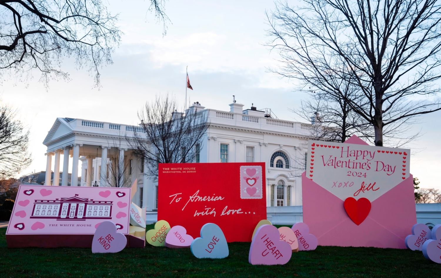 کۆشکی سپی، لە چەند کاژێری رابردوودا بەبۆنەی رۆژی خۆشەویستییەوە، کۆمەڵێک کارتی پیرۆزبایی گاڵتەئامێزی لە هەژمارەکانی خۆی لە تۆڕە کۆمەڵایەتییەکان بڵاوکردەوە. لە کارتەکاندا، چەند وێنە و گرتەیەکی ڤیدیۆیی بەکارهێنراون کە لە خولی دووەمی سەرۆکایەتیی دۆناڵد ترەمپدا، بوونە جێی سەرنجی میدیا و سیاسەت.