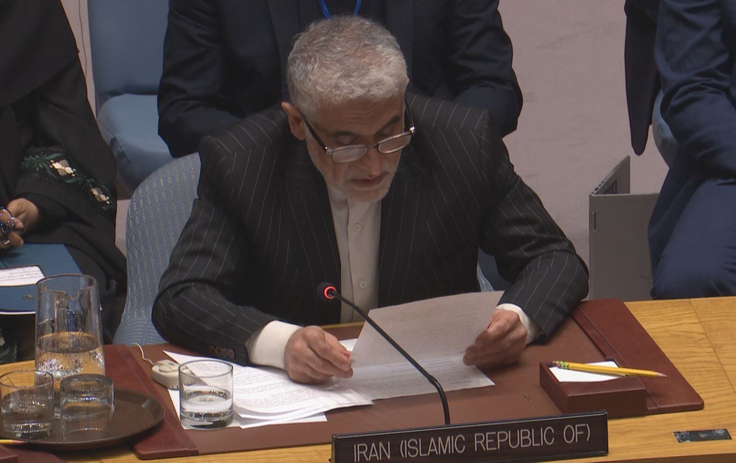 ئەمیر سەعید ئیرەڤانی، نوێنەری ئێران لە نەتەوە یەکگرتووەکان رایگەیاند، " کۆماری ئیسلامیی ئێران جەخت لە مافی خۆی دەکاتەوە بۆ بەرگریکردن لەخۆی، وەکو ئەوەی لە مادەی 51ـی پەیماننامەی نەتەوە یەکگرتووەکاندا هاتووە. ئێران لە کات و شوێن و بەو شێوازانەی کە خۆی هەڵیدەبژێرێت، بەشێوەیەکی یەکلاکەرەوە و بەڕێژەیەکی دیاریکراو وەڵامی ئەم هێرشانە دەداتەوە. ئەمە هەڕەشە نییە، بەڵکو ئەنجامی سرووشتی، یاسایی و پێویستیی هێرشێکی سەربازییە."