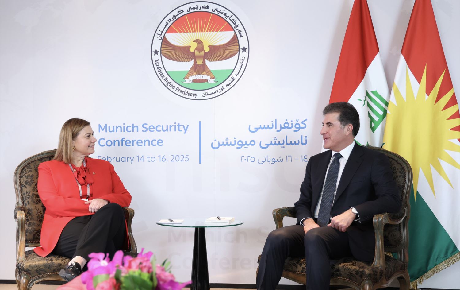 ههر لە میونشن، بهیانیی ئەمڕۆ شەممە، نێچیرڤان بارزانی، سەرۆکی هەرێمی کوردستان، لەگەڵ سیناتۆر ئیلیسا سلۆتکین، ئەندامی لیژنەی هێزە چەکدارەکان لە ئەنجومەنی پیرانی ئەمریکا کۆبووەوە.