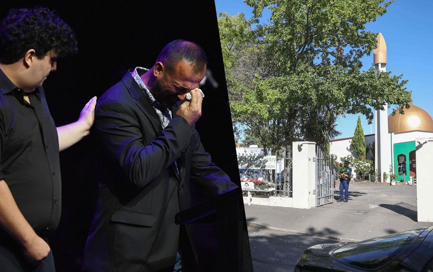 مزگەوتی نوور لە کریستچەرچ و یەکێک لە قوربانییەکان لەکاتی قسەکردنی لە رێوڕەسمێک لە ساڵڕۆژی رووداوەکەی 15ی ئادار. وێنەکان: AFP