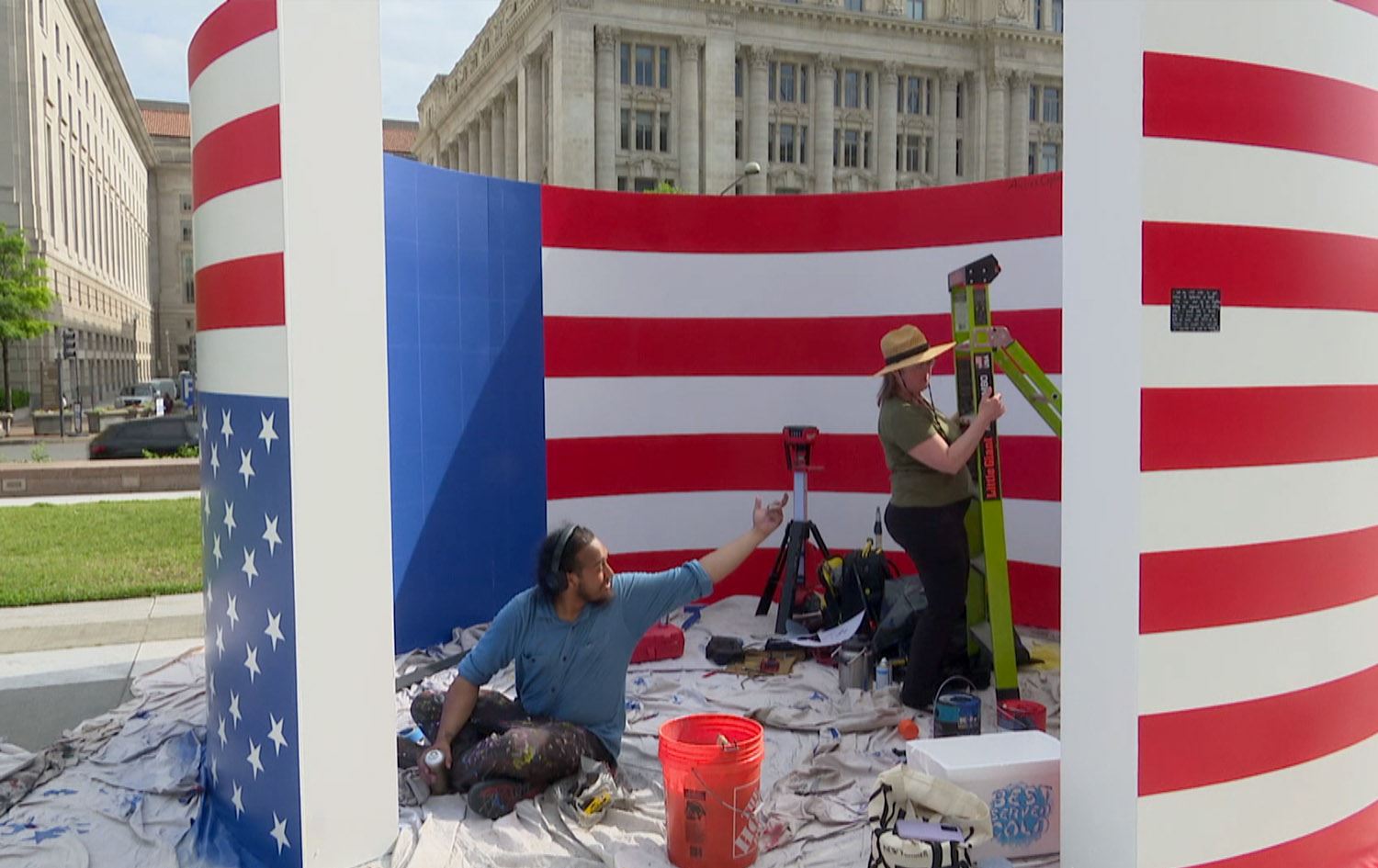 سوزان هونەرمەند و چالاکڤانێکی دژ بە تووندوتیژییەکانی چەکە لە ئەمریکا، چەند رۆژێکە خەریکی دروستکردنی کارێکی هونەرییە لە دووری چەند مەترێک لە کۆشکی سپی و کۆنگرێسی وڵاتەکەی.