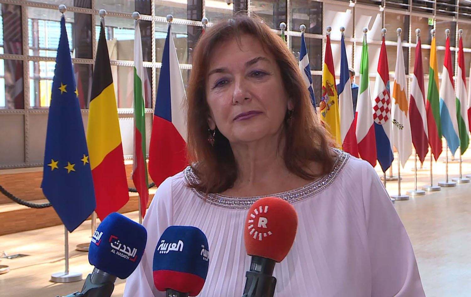 رۆژی سێشەممە 15ی تەممووزی 2025 دوبراڤکا شویکا، کۆمیسیاری یەکێتیی ئەورووپا بۆ وڵاتانی سەر کەناری دەریای نێوەڕاست، لە برۆکسل وەڵامی پرسیارەکانی ئاڵا شاڵی، نێردراوی تۆڕی میدیایی رووداوی بۆ رووماڵی کۆبوونەوەی وەزیرانی دەرەوەی وڵاتانی ئەندام لە یەکێتیی ئەورووپا دایەوە.
