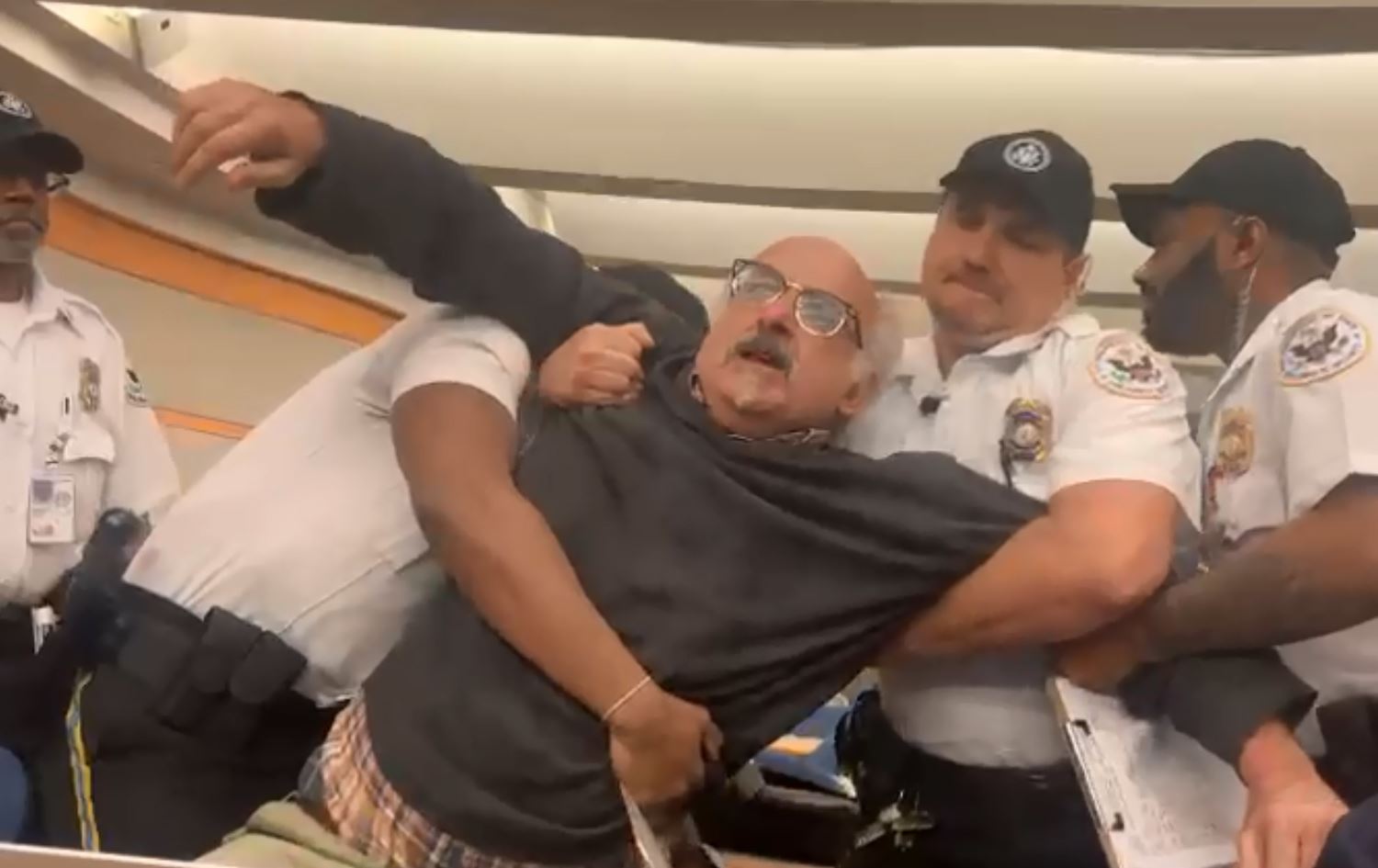 لەکاتی یاوەریکردنیشیان بۆ دەرەوەی هۆڵەکە، بە دەنگی بەرز درووشمی پشتیوانییان بۆ غەززە دووبارە کردەوە و رەخنەیان لە سیاسەتی ئیدارەی بایدن و چالاکییەکانی بلینکن گرت.