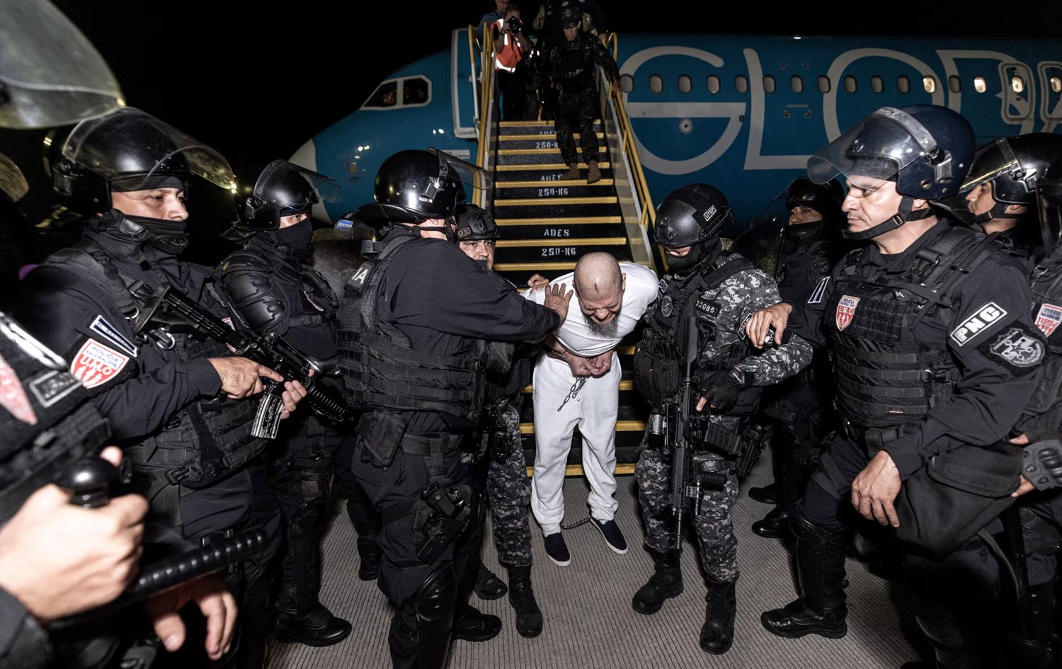 238 ئەندامی گرووپێکی تاوانکاری ڤەنزوێلی، کە تۆمەتبارن بە قاچاخچێتیی مادەی هۆشبەر و کوشتنی دەیان کەس، لە ئەمریکاوە گوێزرانەوە زیندانێکی سلڤادۆر.