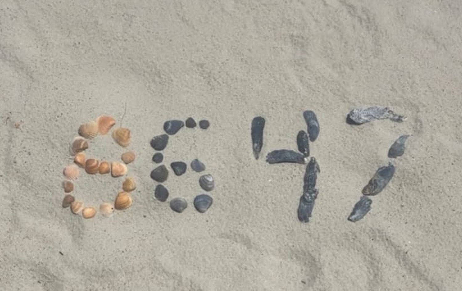 لە وێنەکەدا کە لە کەنار دەریا گیراوە، کۆمی چەند سەدەفێک کە بریتین لە زیندەوەری توێکڵداری بچووکی دەریایی، لەسەر شێوەی ژمارەی 8647 ریز کردوون.