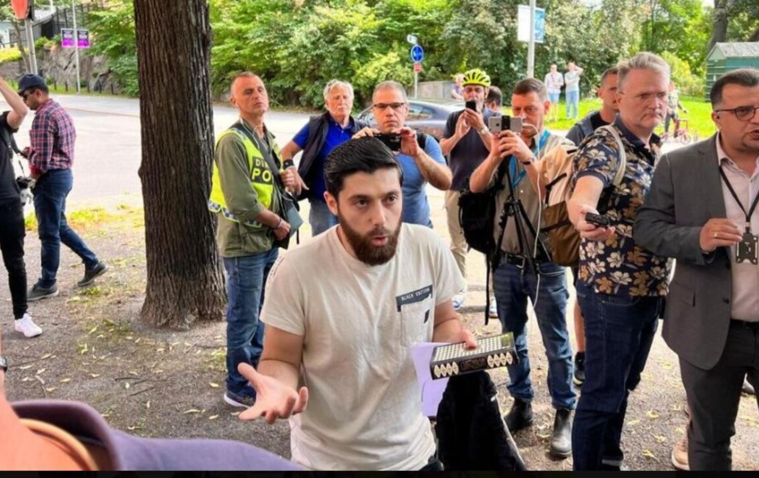 ئەو پیاوەی مۆڵەتی سووتاندنی ئینجیل و تەوراتی لە پۆلیسی سوێد وەرگرتبوو، لەبەردەم باڵیۆزخانەی ئیسرائیل رایگەیاند، هەرگیز نیازی نەبووە دوو پەرتووکە پیرۆزەکە بسووتێنێت و تەنیا ویستوویەتی سەرنجەکان بۆ سەر خۆی رابکێشێت تاوەکو پەیامێک لە دژی سووتاندنی قورئانی پیرۆز بگەیێنت.