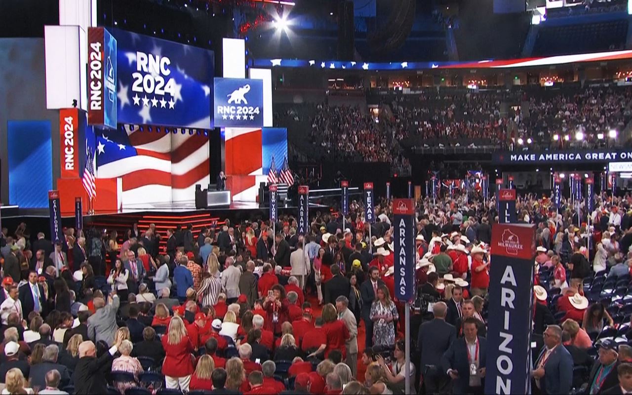 لە کۆنگرەی نیشتمانیی کۆمارییەکانی ئەمریکا لە شاری مڵوۆکی لە ویلایەتی ویسکۆنسن، 50 هەزار کۆماری تێیدا کۆبوونەوە بۆ دەستنیشانکردنی ترەمپ وەکو بەربژێری فەرمیی پارتەکە و جێگرەکەی بۆ هەڵبژاردنی سەرۆکایەتیی ئەو وڵاتە.