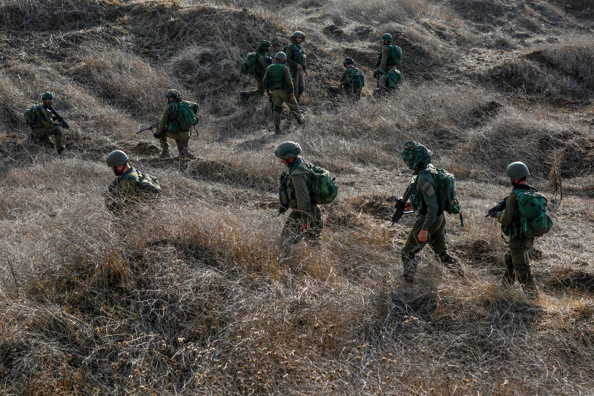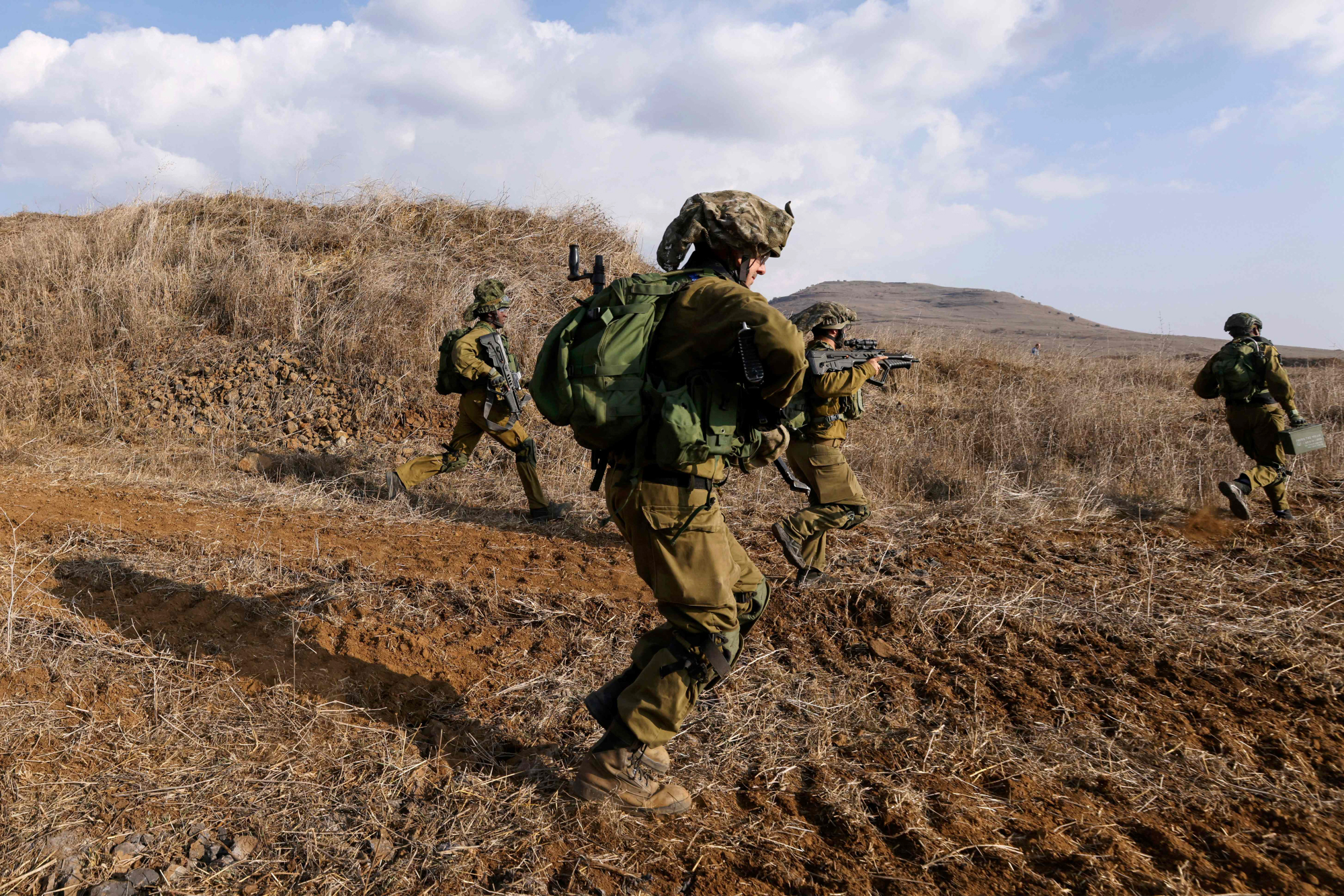 سەربازانی ئیسرائیلی بەشدارییان لە مەشقێکی سەربازیدا کرد لە بەرزاییەکانی جۆلان لە نزیک سنووری وڵاتەکەیان و لوبنان.