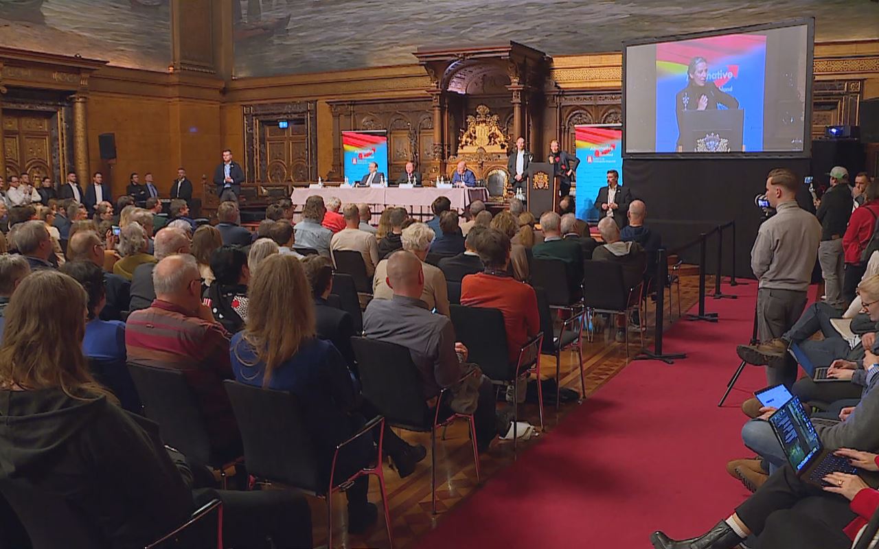 لە شارەوانی شاری هامبۆرگ، نزیکەی هەزار کەس لە لایەنگرانی پارتی جێگرەوە بۆ ئەڵمانیا چوون بۆ گوێگرتن لە ئالیس ڤایدل، سەرۆکی پارتەکەیان کە پاڵێوراوە بۆ راوێژکاری ئەڵمانیا. لایەنگران درووشمی "نا بۆ باج، نا بۆ دەوڵەتی ئیسلامی، نا بۆ سیاسەتی کۆچبەری، بەڵێ بۆ کۆچی پێچەوانە" دەڵێنەوە.
