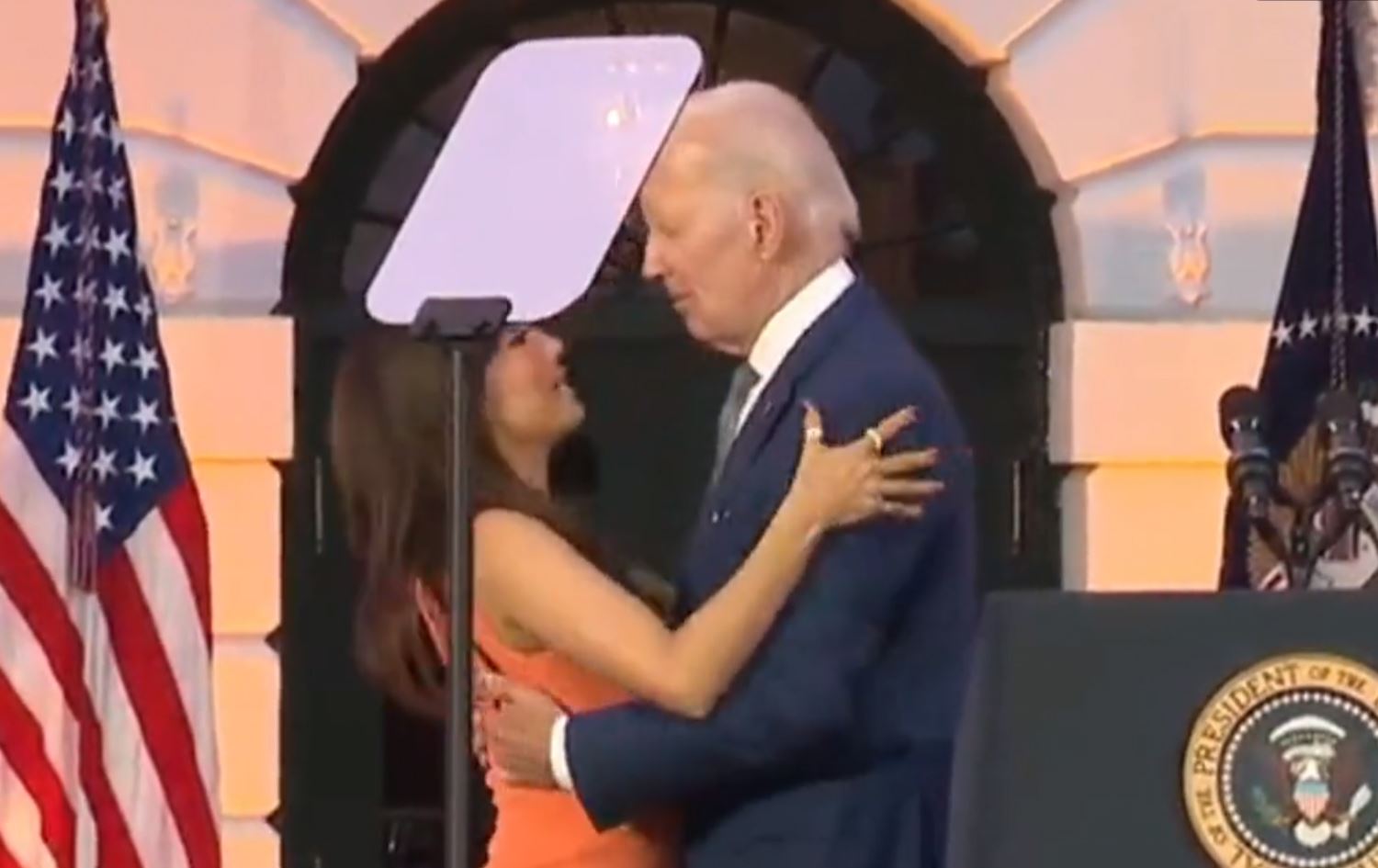 لە ئاهەنگێکدا کە لە باخچەی کۆشکی سپی بۆ بڵاوبوونەوەی فیلمێک رێکخرابوو، جۆ بایدن باوەش بە دەرهێنەری فیلمەکەدا دەکات و بۆ چەند چرکەیەک کەمەری دەگرێت، تاوەکو خانمە هونەرمەندەکە دەستی بایدن دووردەخاتەوە.
