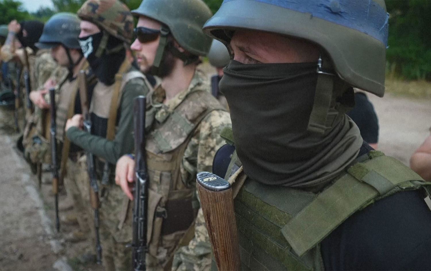 یەکەیەکی سوپای ئۆکراینا لە نزیک شاری کیێڤ، مەشق بە ژمارەیەک گەنجی خۆبەخشی ئۆکراینا دەکرێت. وڵاتەکە بەمەبەستی پڕکردنەوەی قەیرانی سەرباز، پەنای بۆ گەنجان بردووە.