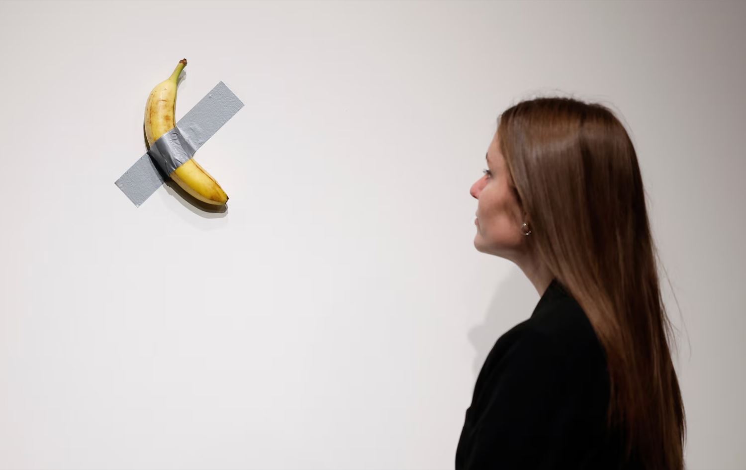 هونەرمەندەکە ئەمجارەش مۆزێک بە تیپێک لە دیوارێک دەدات و دەیەوێت وەکو تابلۆیەکی هونەری لانیکەم بە یەک ملیۆن دۆلار بفرۆشێت.