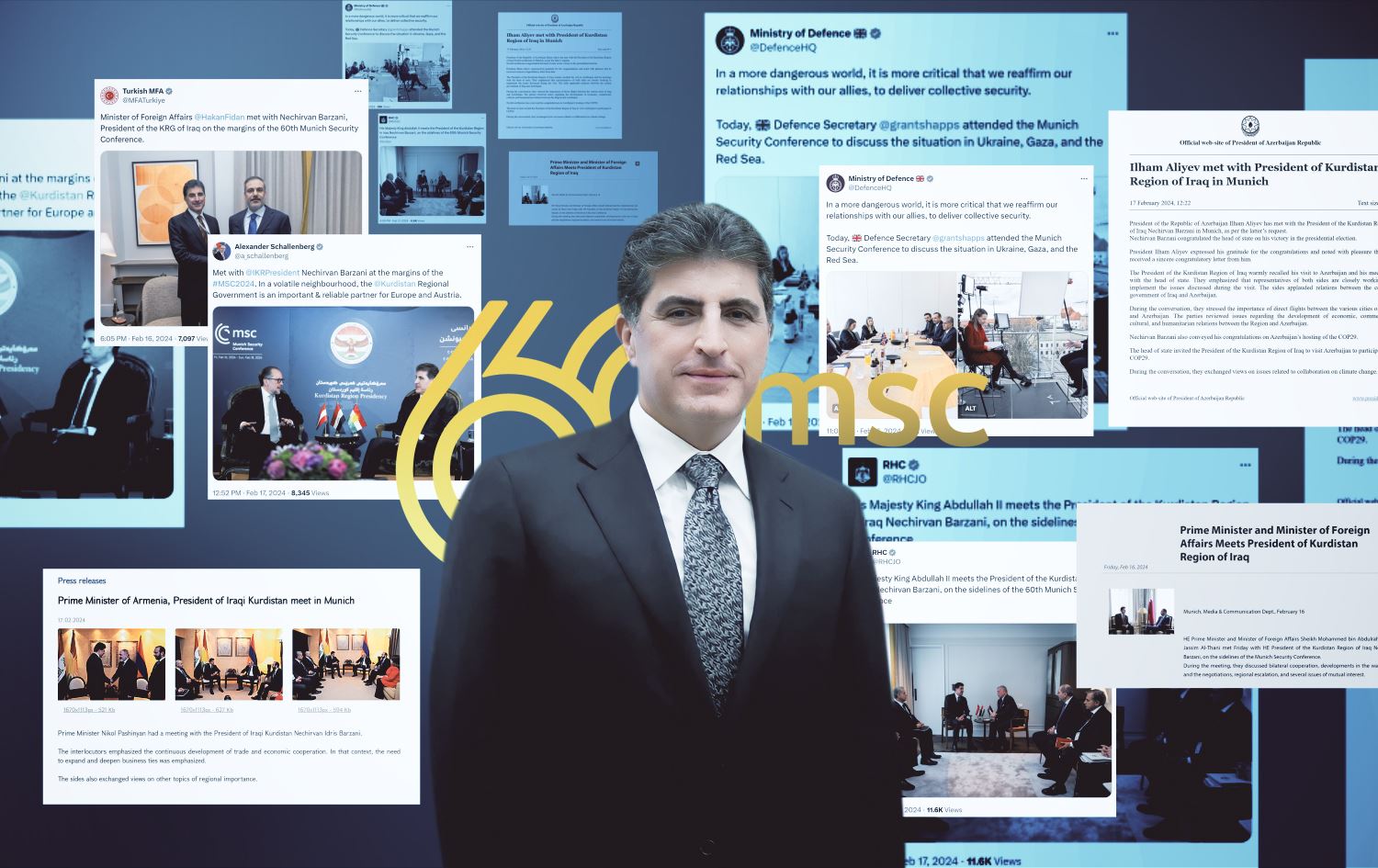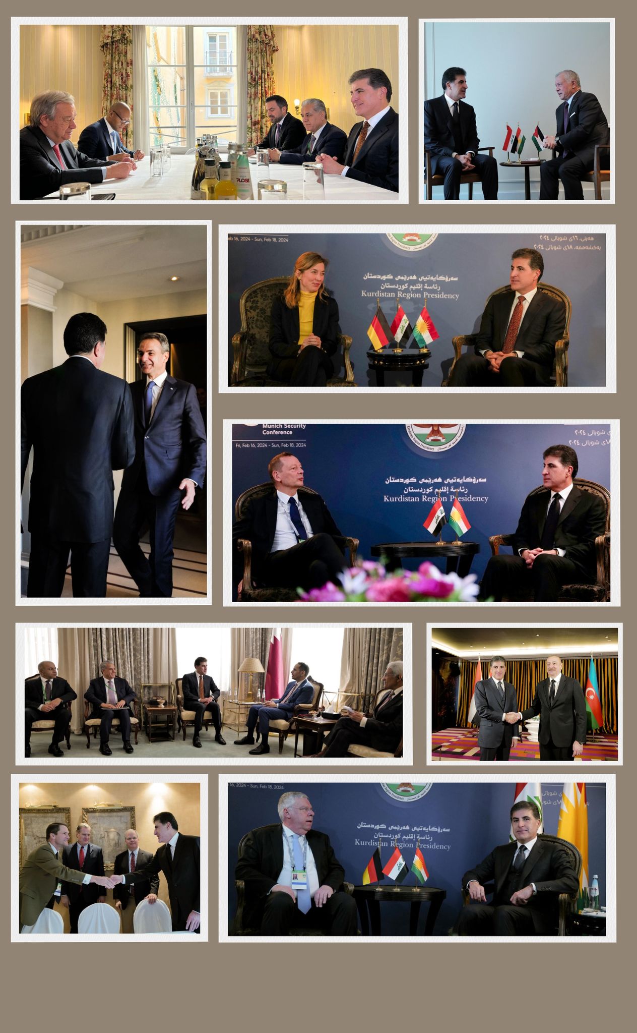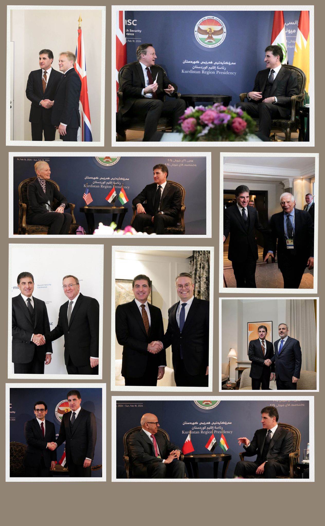 رۆژی یەکشەممە، 18-02-2024، نێچیرڤان بارزانی، سەرۆکی هەرێمی کوردستان لەگەڵ تەواوبوونی 60ـەمین خولی کۆنفرانسی ئاسایشی میونشن لە ئەڵمانیا کۆتایی بە دیدار و کۆبوونەوەکانی هێنا، ئەمەش دوای ئەوەی لە سێ رۆژی کۆنفرانسەکەدا چەندین کۆبوونەوەی گرنگی کرد.