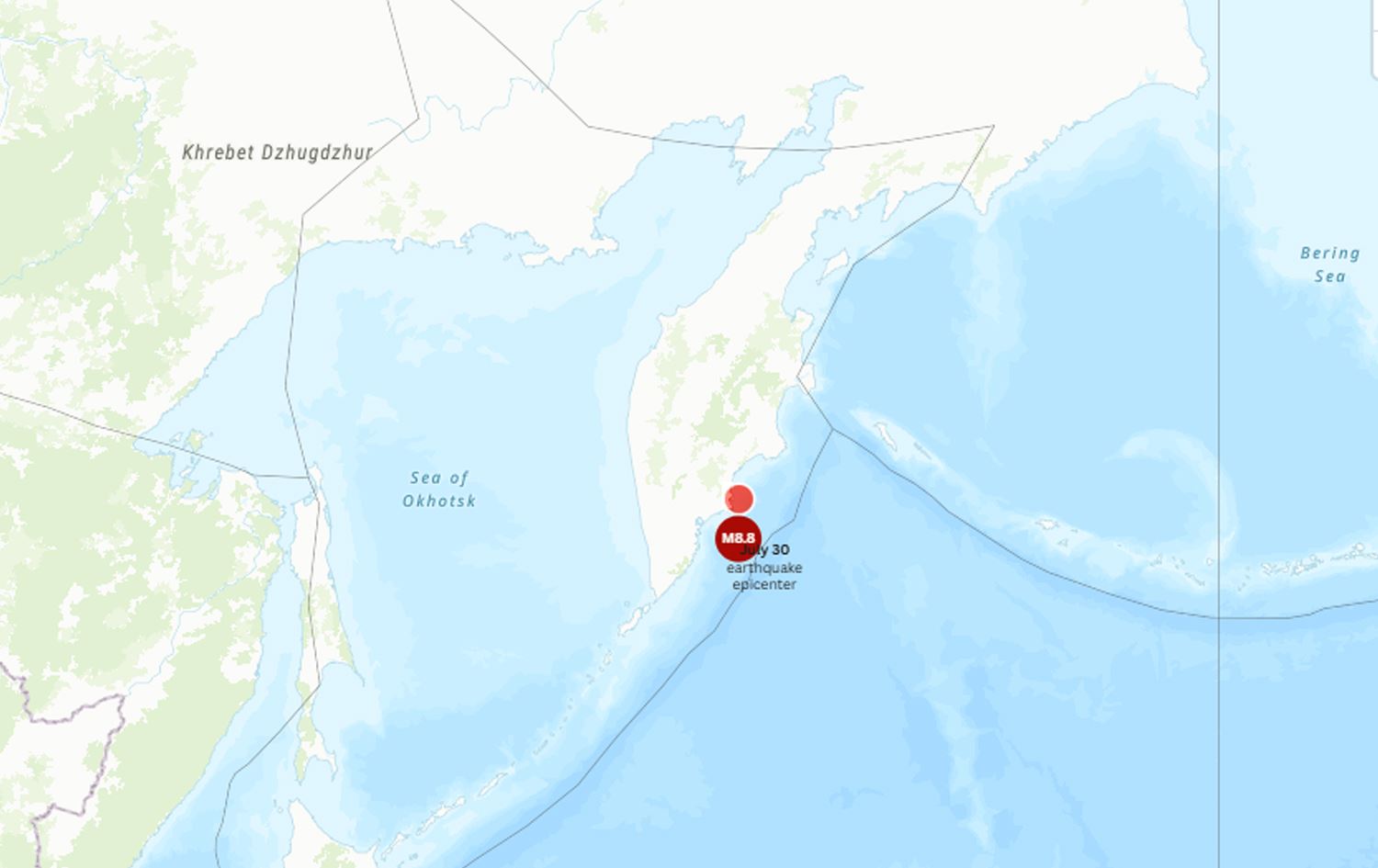 چەقی بوومەلەرزەکە 128 کیلۆمەتر لە ناوەندی شاری پێترۆپاڤلۆڤسک کامچاتسکی دوور بووە و قووڵاییەکەی تەنیا 10 کیلۆمەتر بووە.
