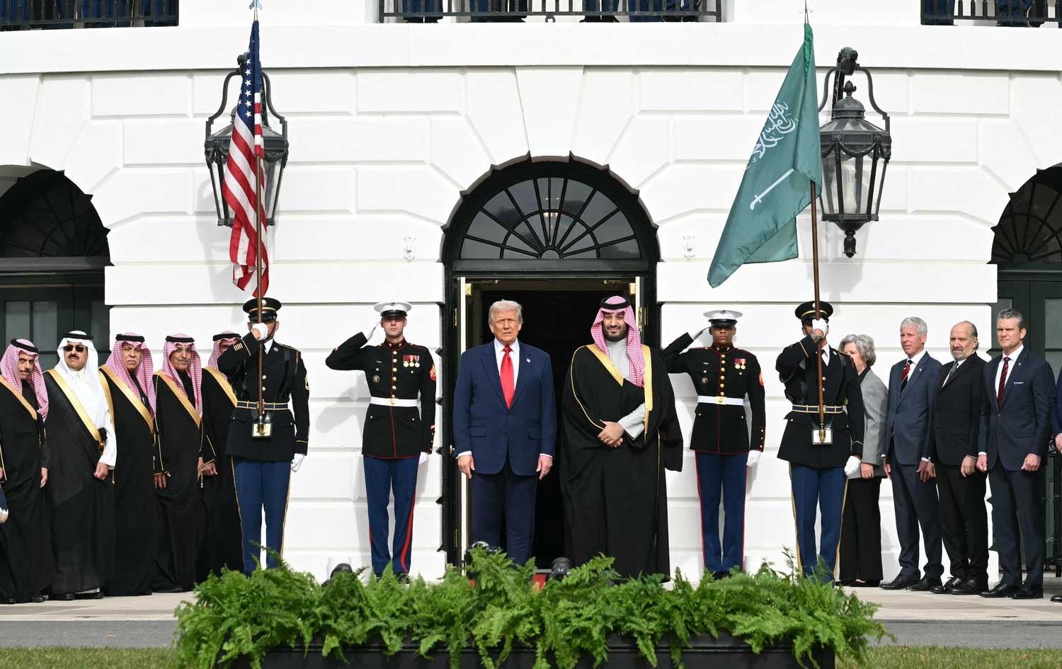 ترەمپ پێشوازییەکی گەورەی لە محەممەد بن سەلمان کرد. لە نمایشێکدا کە تێیدا سوارچاکانی سوپا و فڕۆکەی جەنگیی ئێف35 بەشدارییان کرد، ترەمپ جەختی لە پەیوەندیی پتەوی نێوان هەردوو وڵات کردەوە.