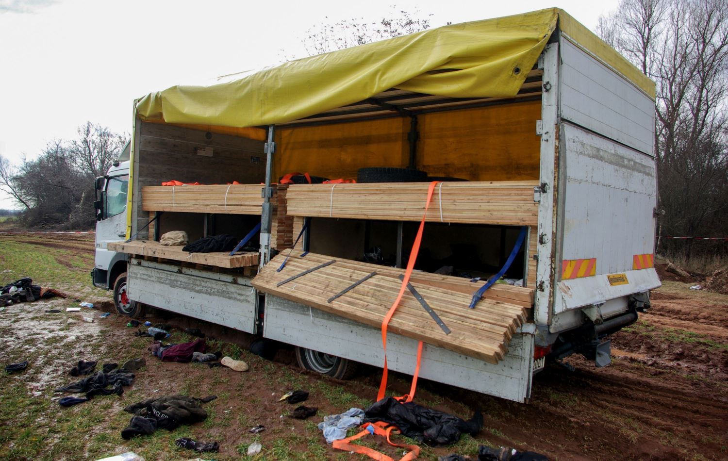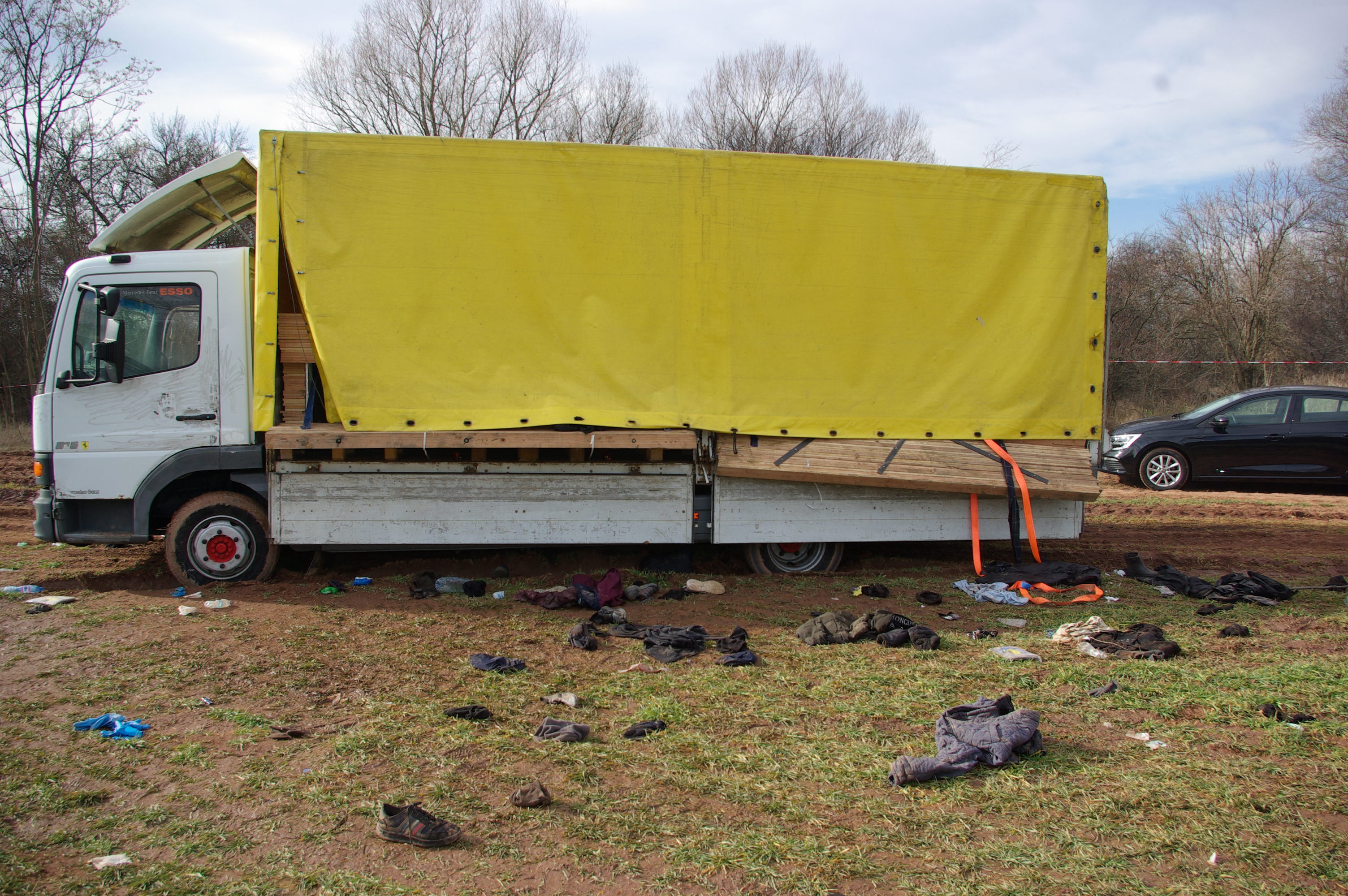 وێنەی شوێنی گیانلەدەستدانی کۆچبەرە ئەفغانییەکان لەنێو بارهەڵگرەکە، کە لەلایەن نووسنیگەی داواکاری گشتیی بولگاریا بڵاوکراوەتەوە