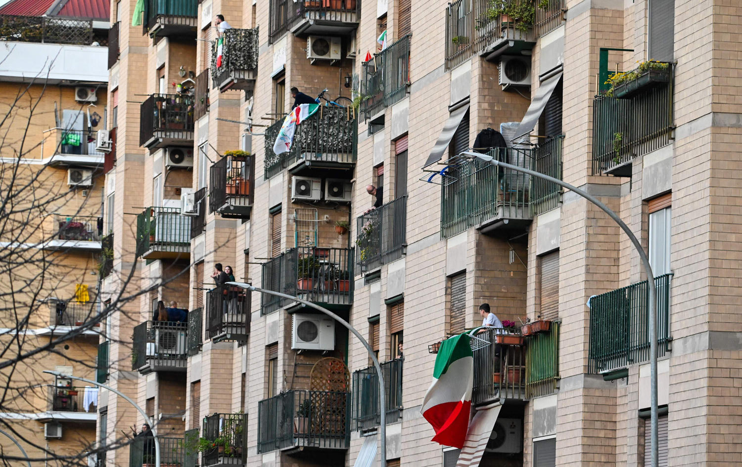 ژمارەیەک لە هاووڵاتییان لە رۆما لەنێو شوقەکانیان ماونەتەوە. وێنە: AFP