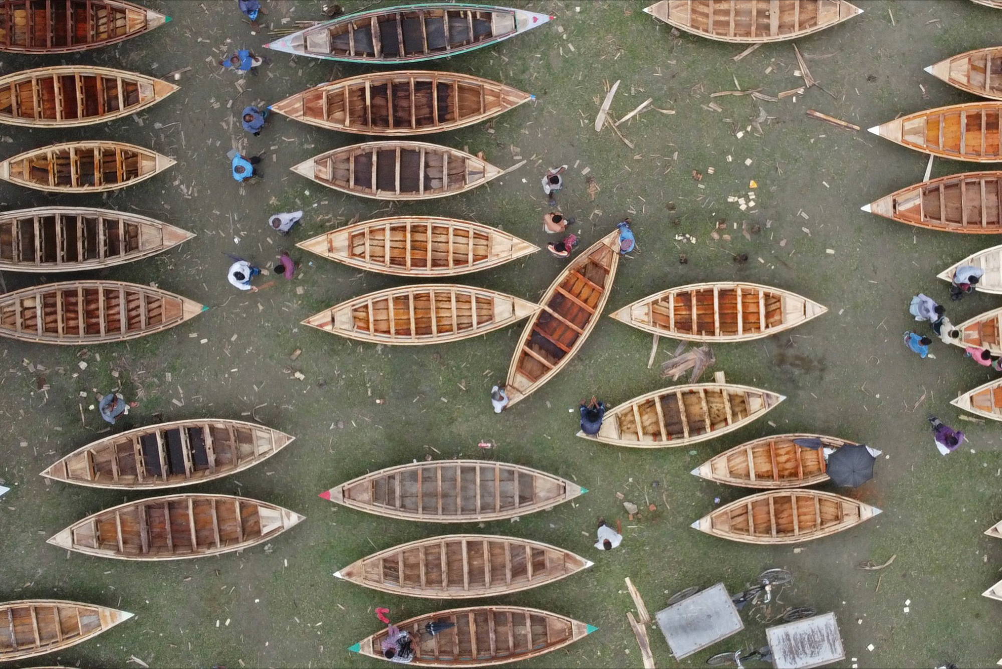 لە بازاڕی بەلەمە کەلەپوورییەکانی شاری مانیکگانجی بەنگلادیش ژمارەیەکی زۆر بەلەمی تەختەیی دانراون. بەشێکی خەڵکی بۆ کڕینیان سەردانی بازاڕەکەیان کردووە تاوەکو بەلەمێکی دڵخوازیان بکڕن.