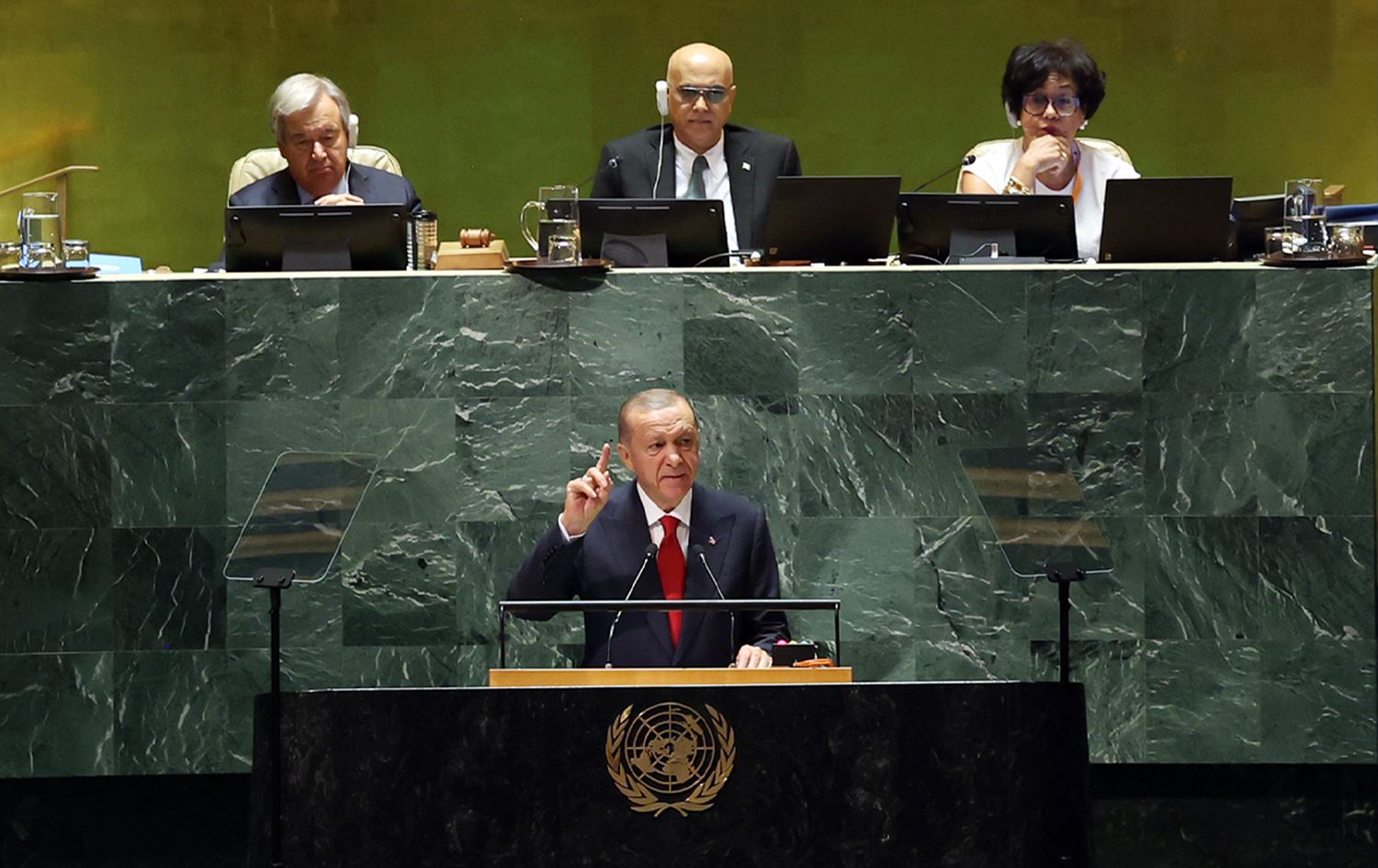 لە گوتارەکەیدا لە 78ـەمین کۆبوونەوەی کۆمەڵەی گشتیی نەتەوە یەکگرتووەکان لە نیویۆرک، رەجەب تەیب ئەردۆغان، سەرۆککۆماری تورکیا باسی لە چەند بابەتێکی هەرێمی و نێودەوڵەتی کرد و لەبارەی عێراقەوە گوتی، "بێ جیاوازی لە نێوان پێکهاتەکانی ئەو وڵاتەدا بەردەوامین لە پشتگیری یەکگرتوویی سیاسی، یەکپارچەیی خاکەکەی و ئاوەدانکردنەوەی. بە جێبەجێکردنی پرۆژەی رێگەی گەشەپێدان، پێکەوەبەستنی ناوچەکە بەهێزتر دەکەین."
