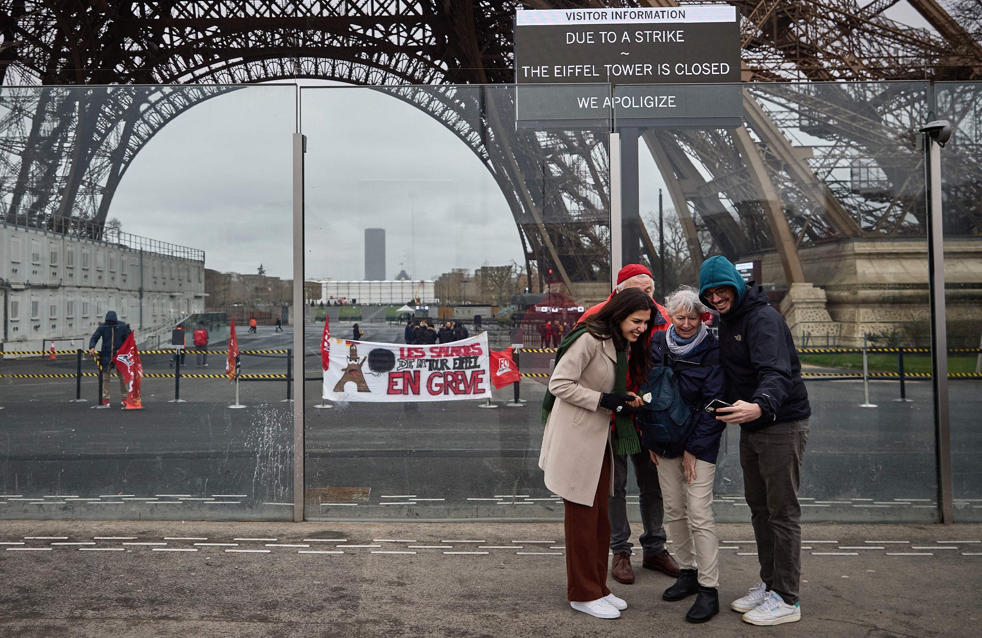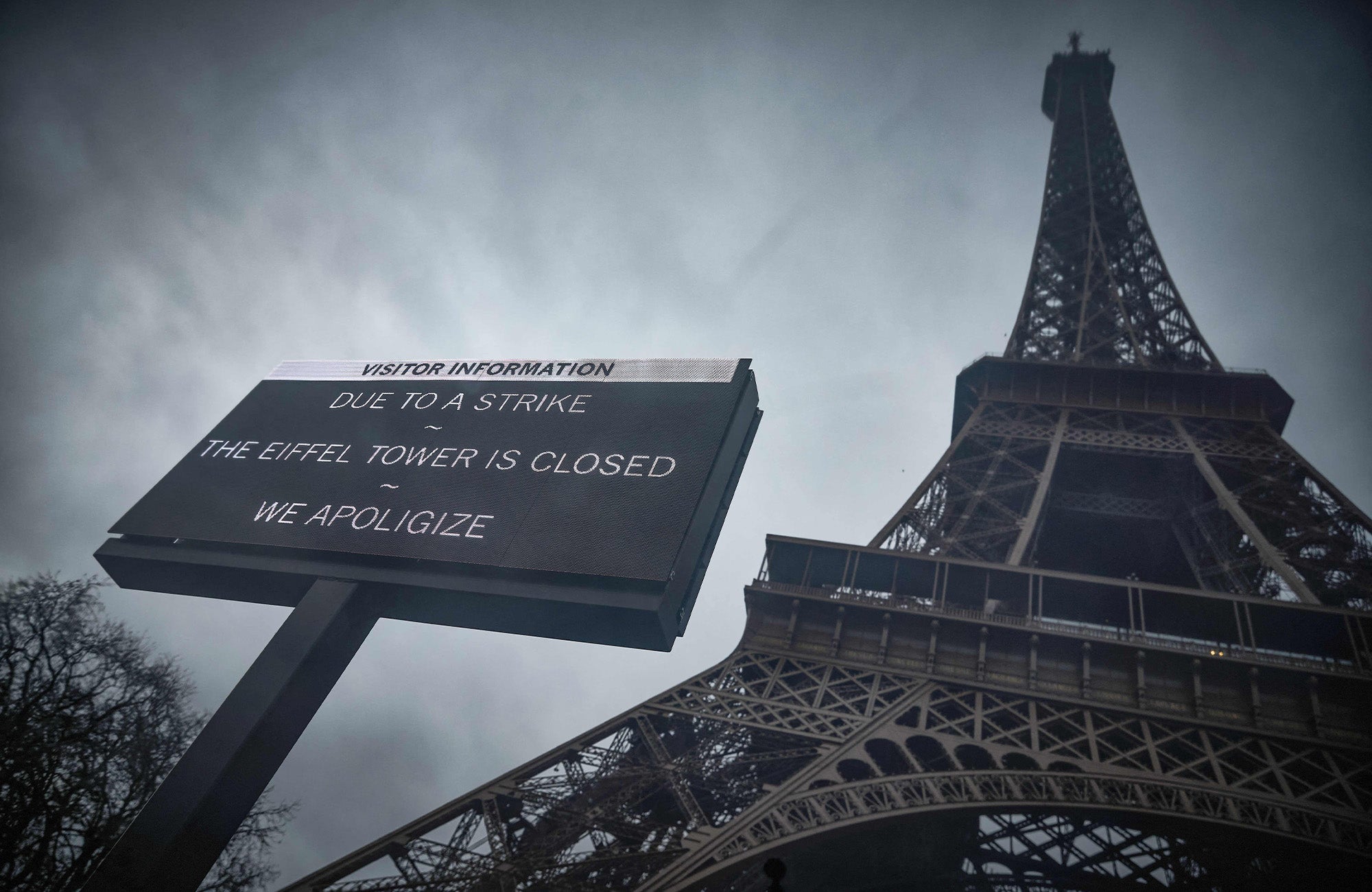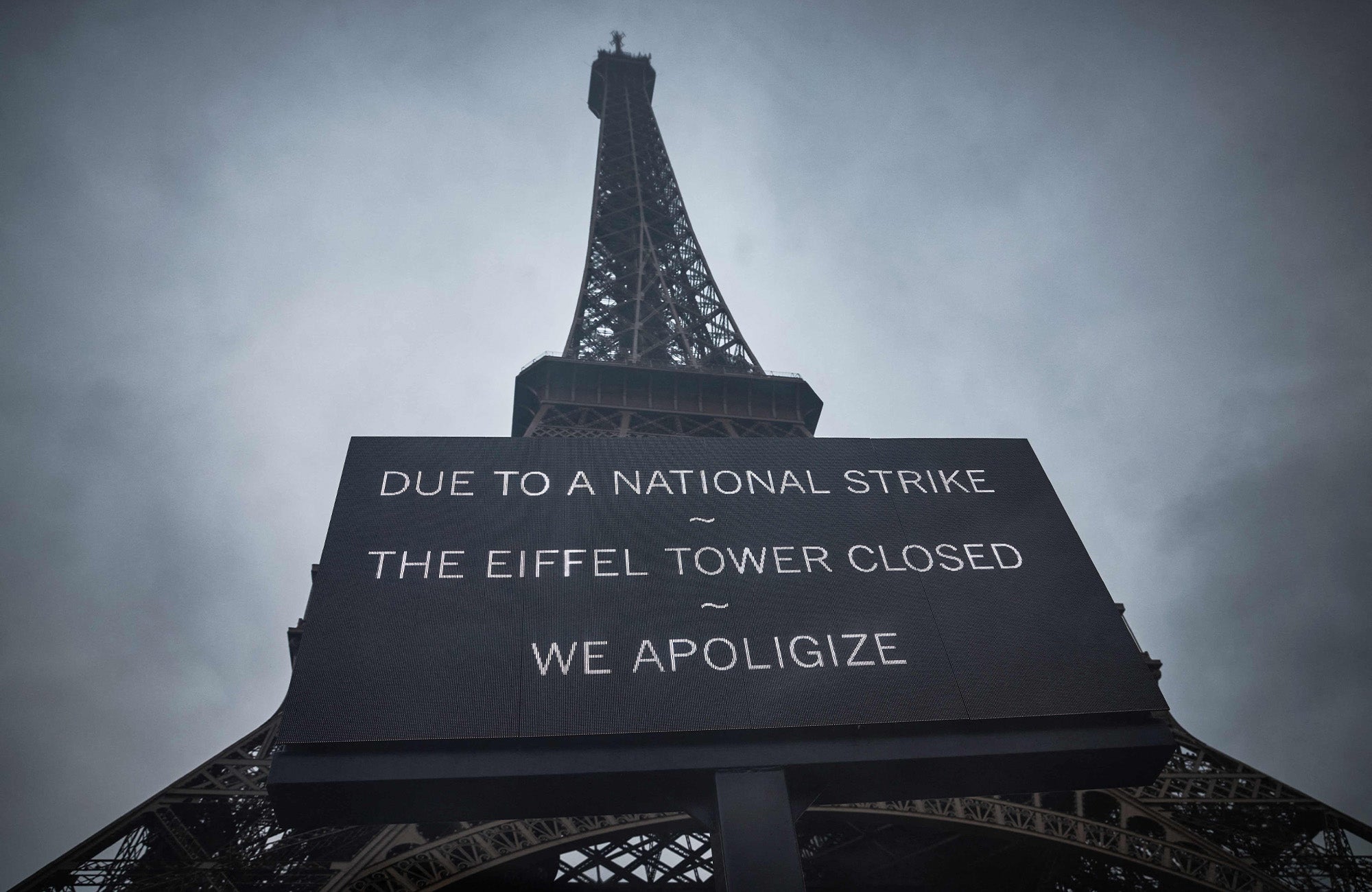 ئەو گەشتیارانەی مەبەستی سەردانکردنی بورجەکەیان هەیە بە سەرسوڕمانەوە رووبەڕووی شاشەیەک دەبنەوە کە لەسەری نووسراوە، "بە داوای لێبووردنەوە، بەهۆی مانگرتن بورجەکە داخراوە."