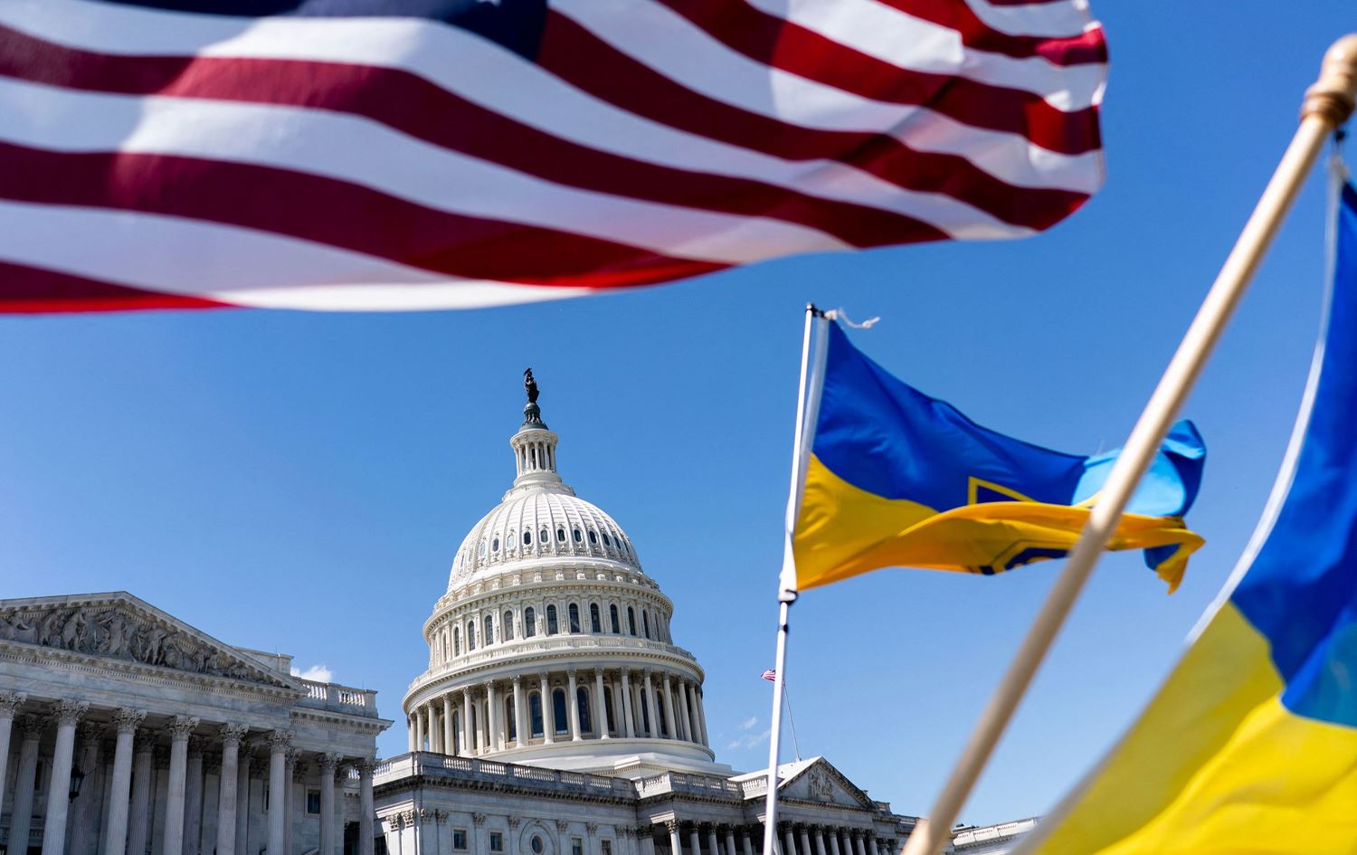 ئاڵای ئەمریکا و ئۆکراینا لەگەڵ باڵەخانەی ئەنجوومەنی نوێنەران. وێنە: athan Howard / GETTY IMAGES NORTH AMERICA / AFP