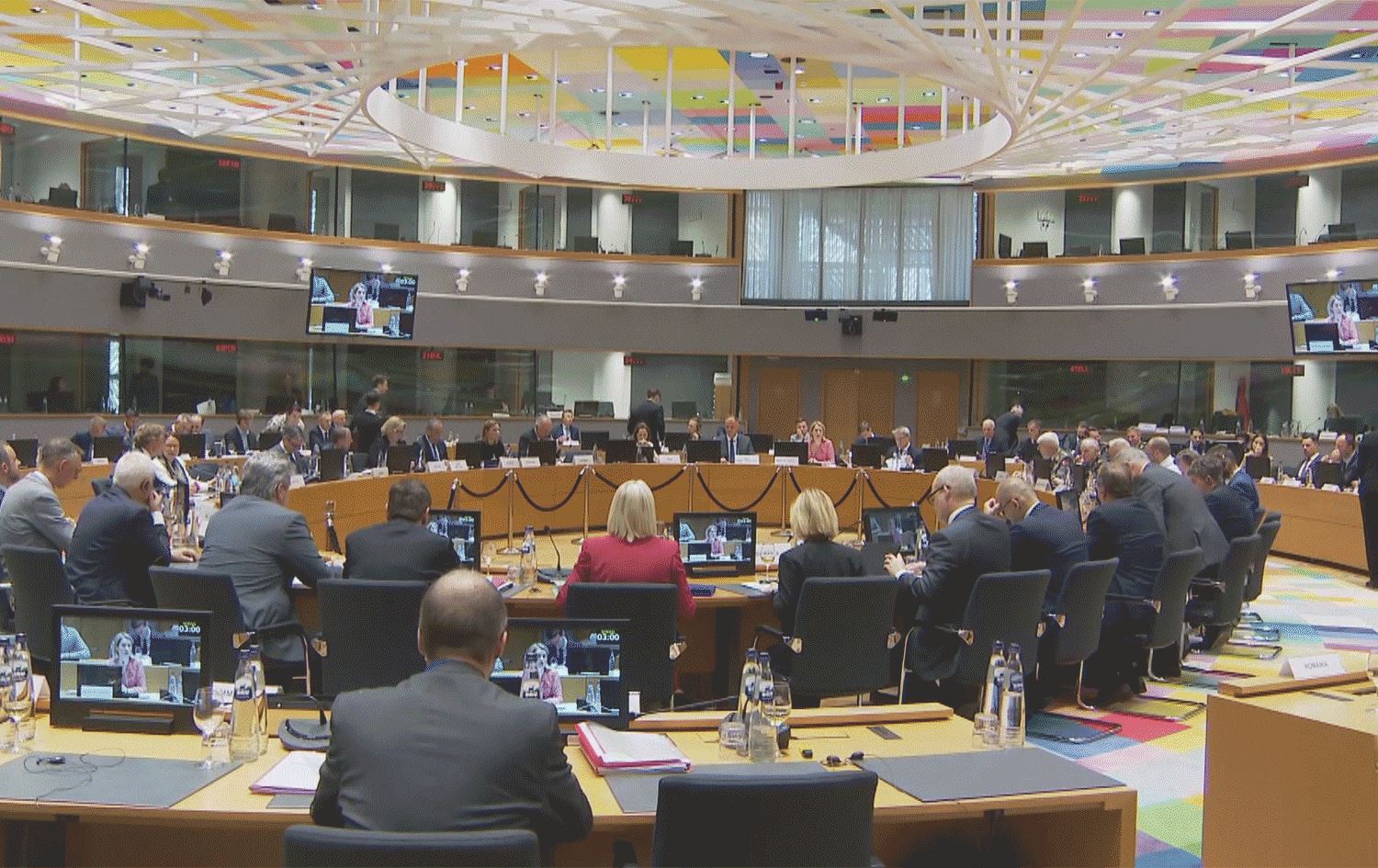 54 وەزیری ئەنجوومەنی کاروباری دەرەوە و کاروباری بەرگریی یەکێتیی ئەورووپا کۆبوونەوە؛ بێ کێشە و مشتومڕ، 17یەمین پاکێجی سزایان بەسەر رووسیادا سەپاند و قوورسایی ئەمجارەشیان لەسەر کەرتی کەشتیوانی بوو، بەڵام بۆ پرسی هەڵگرتنی سزاکانی سەر سووریا، رای جیاواز و نیگەرانیی زۆر هەبوون لە دەستکراوەکردنی حکومەتێک کە هێشتا بۆ ئەورووپا نوێ و تاقینەکراوە.