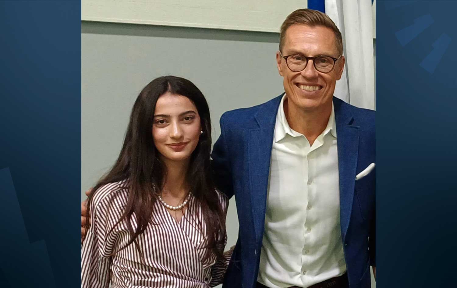 ئاهەنگ خەبات، ئەو کچە کوردەیە پێشوازیی لە سەرۆکی فینلاند کردووە، بە رووداوی گوت: "رۆژی چوارشەممە سەرۆکی فینلاند سەردانی قوتابخانەکەمانی کرد".